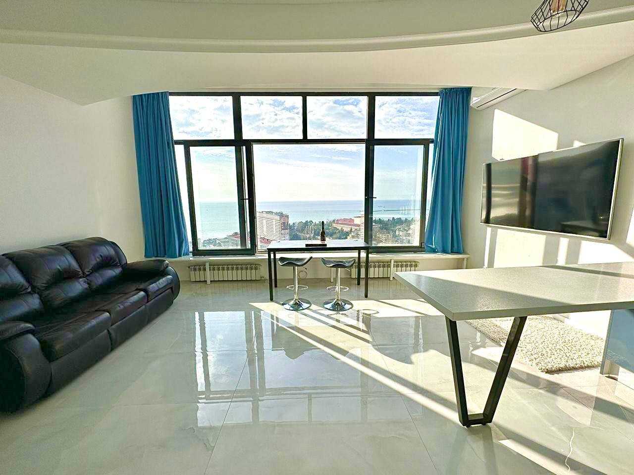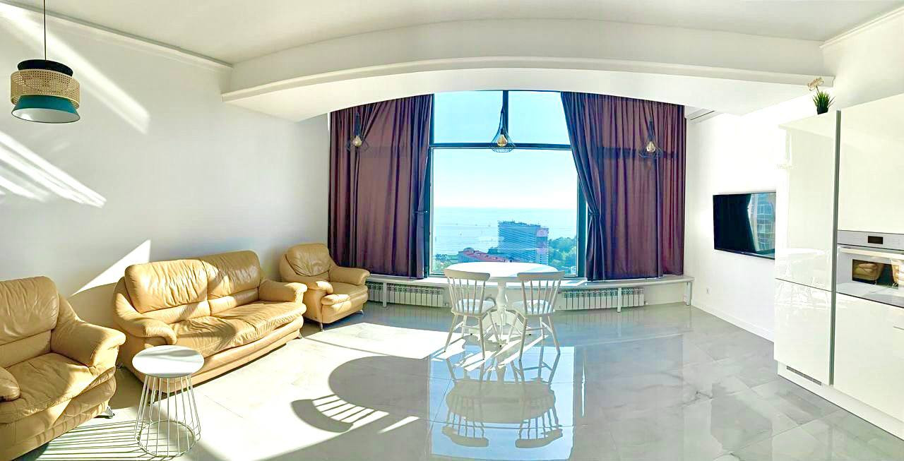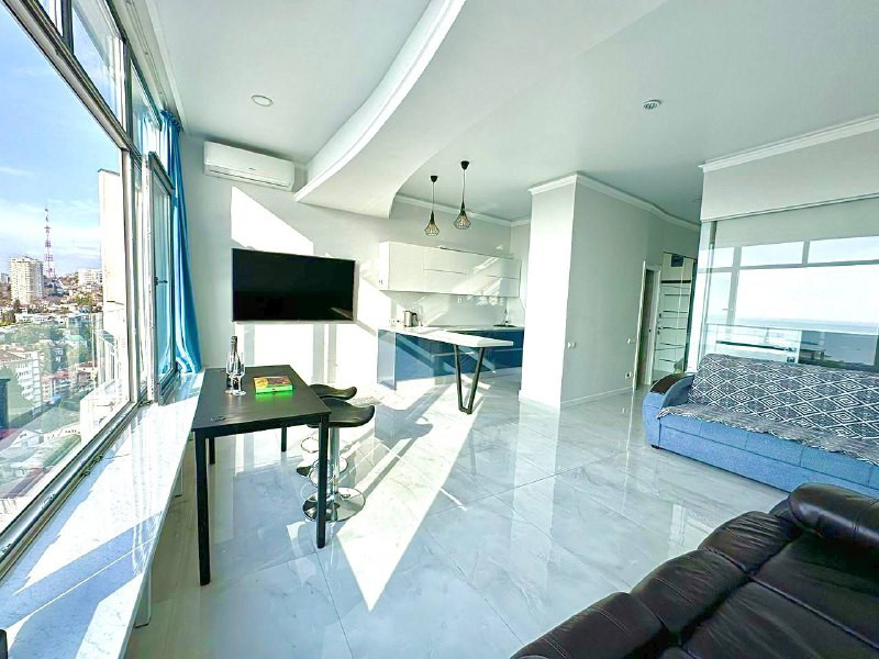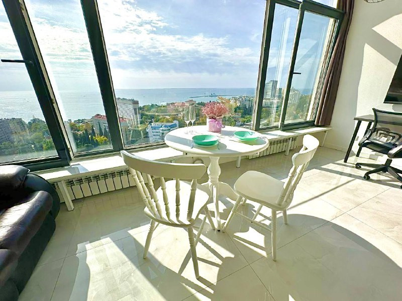 Комплекс - элитная новостройка, обеспечивающая высокий комфорт проживания. Квартира оборудована новейшей, дорогой техникой и текстилем, а ремонт и дизайн проект квартиры выполнен лучшими инженерами! Потрясающие панорамные окна и шикарные террасы открывают потрясающие виды на море и город курорn и на национальный парк - "Дендрарий"!!!