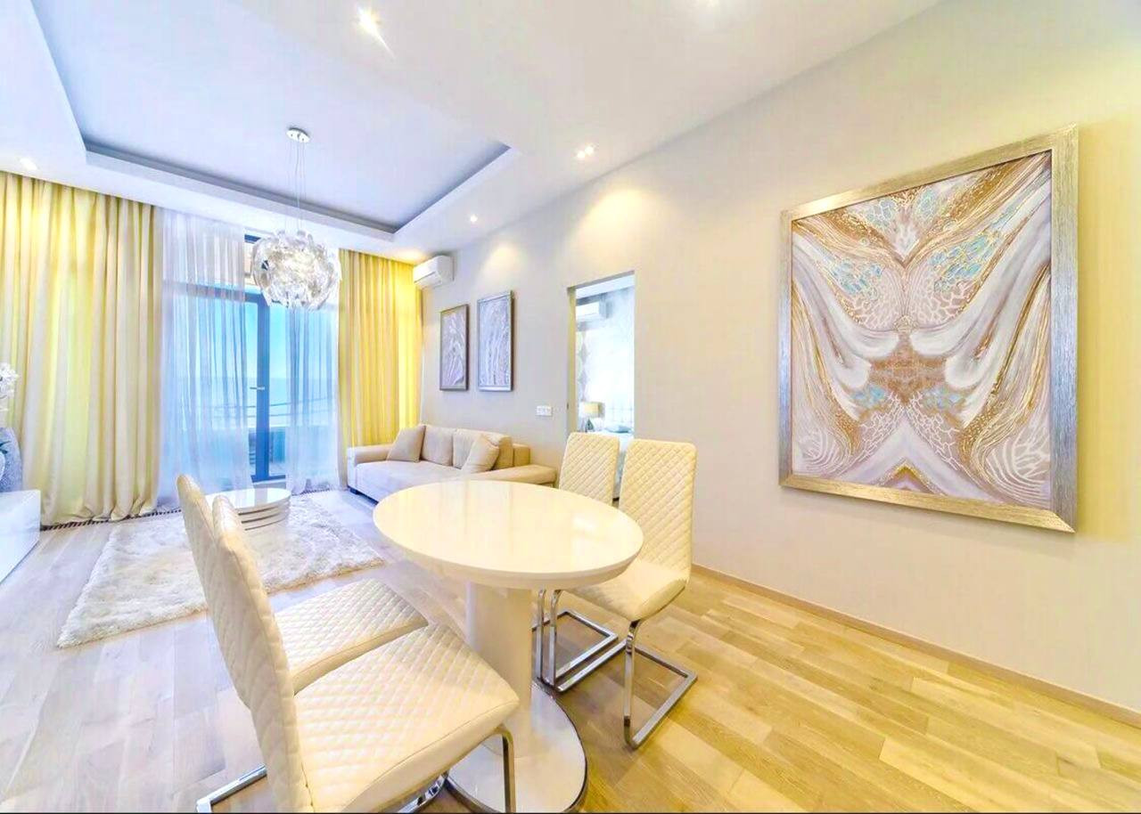 Апартамент оборудована новейшей, дорогой техникой и текстилем, а ремонт и дизайн проект квартиры выполнен лучшими инженерами! Потрясающие панорамные окна и шикарные террасы открывают потрясающие виды на море и город курорт и морскую гладь Черного Моря ! ! !