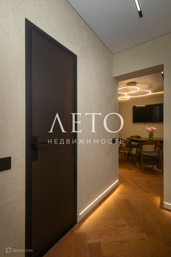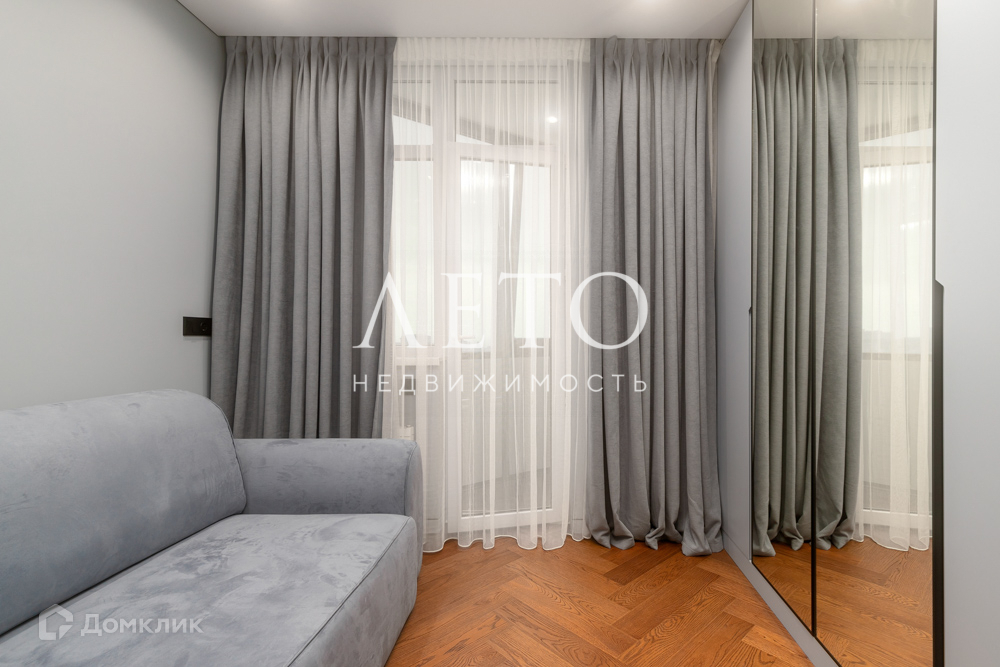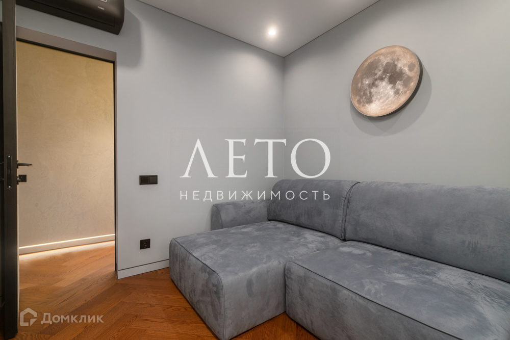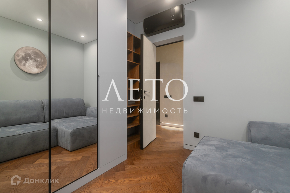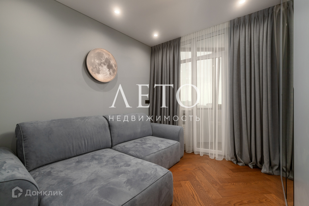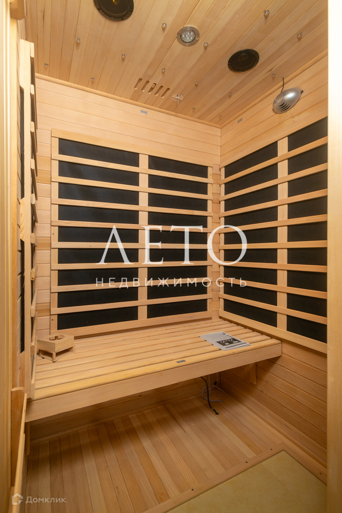 В квартире - большая полноценная спальня с панорамным остеклением, детская игровая комната совмещена с рабочим кабинетом, просторная кухня с балконом. Совмещенный санузел граничит с сауной.