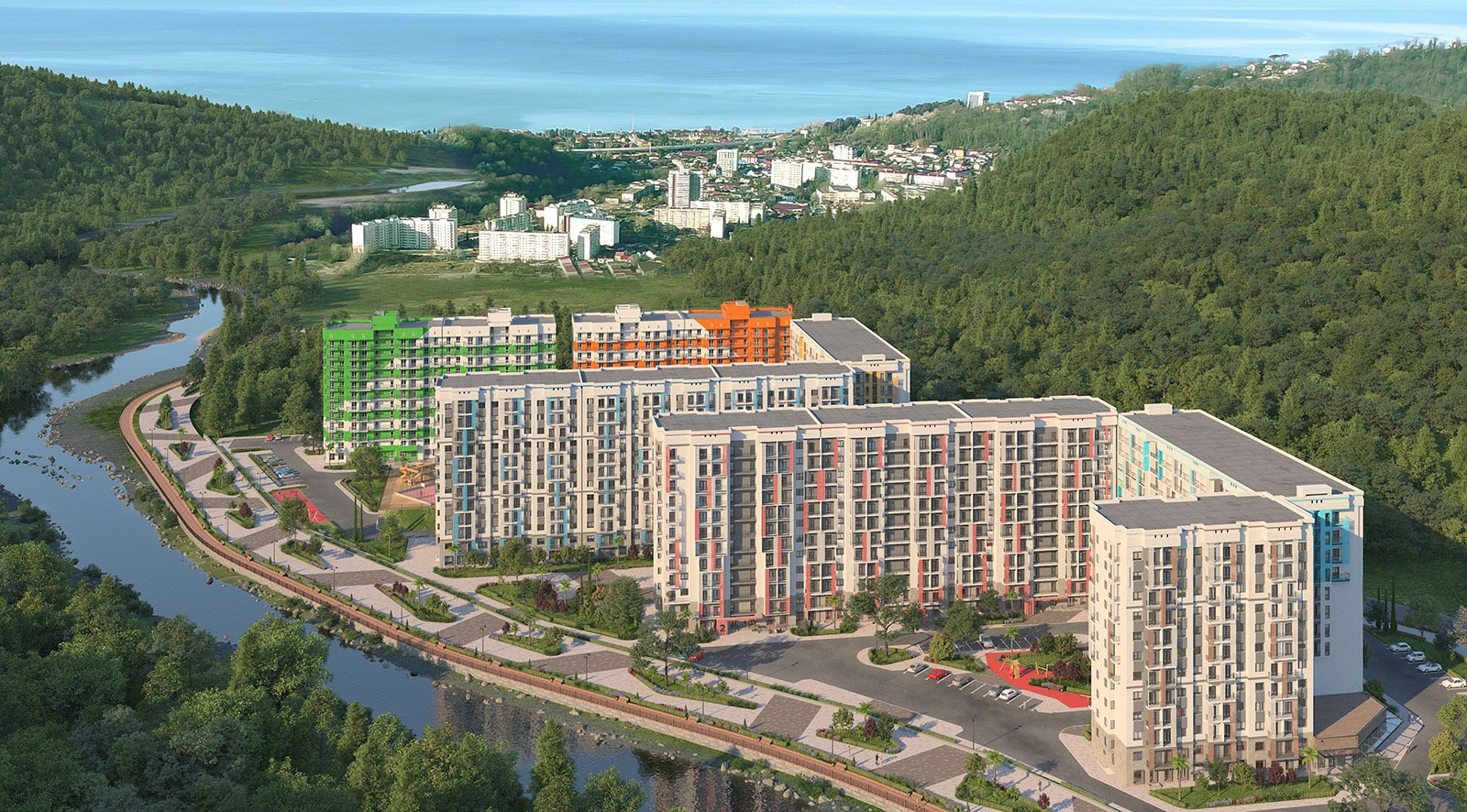 Комплекс расположен вдоль реки Кудепста.
