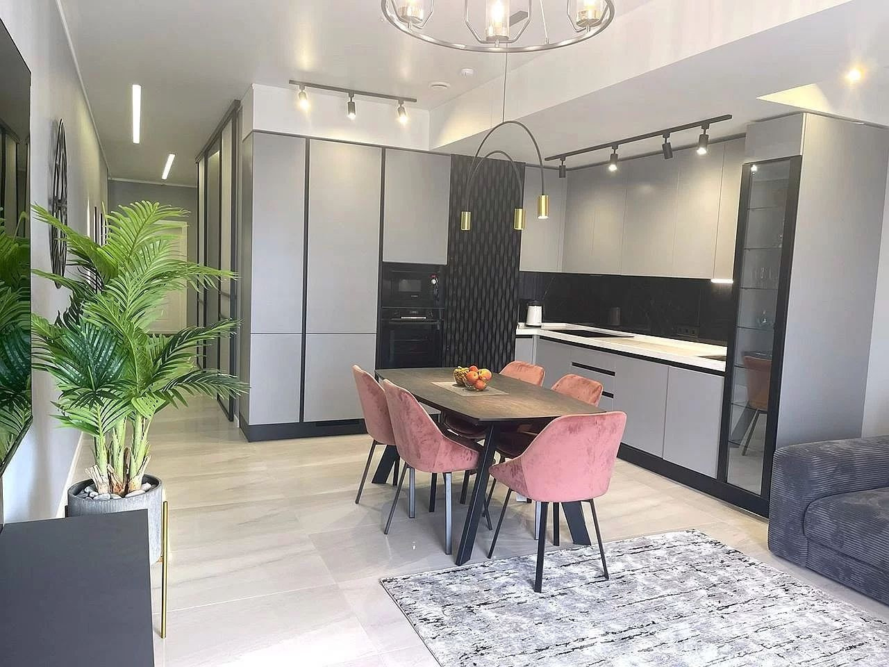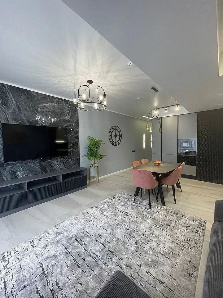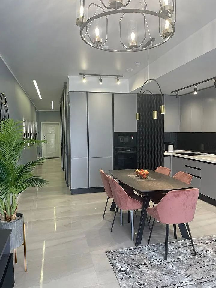 Апартамент общей площадью 65 м2 с грамотным планировочным решением и тщательно продуманным зонированием (изолированная спальня, гостиная зона совмещена с кухней и оборудованная гардеробная зона, совмещенный просторный санузел).