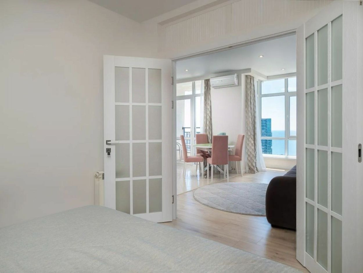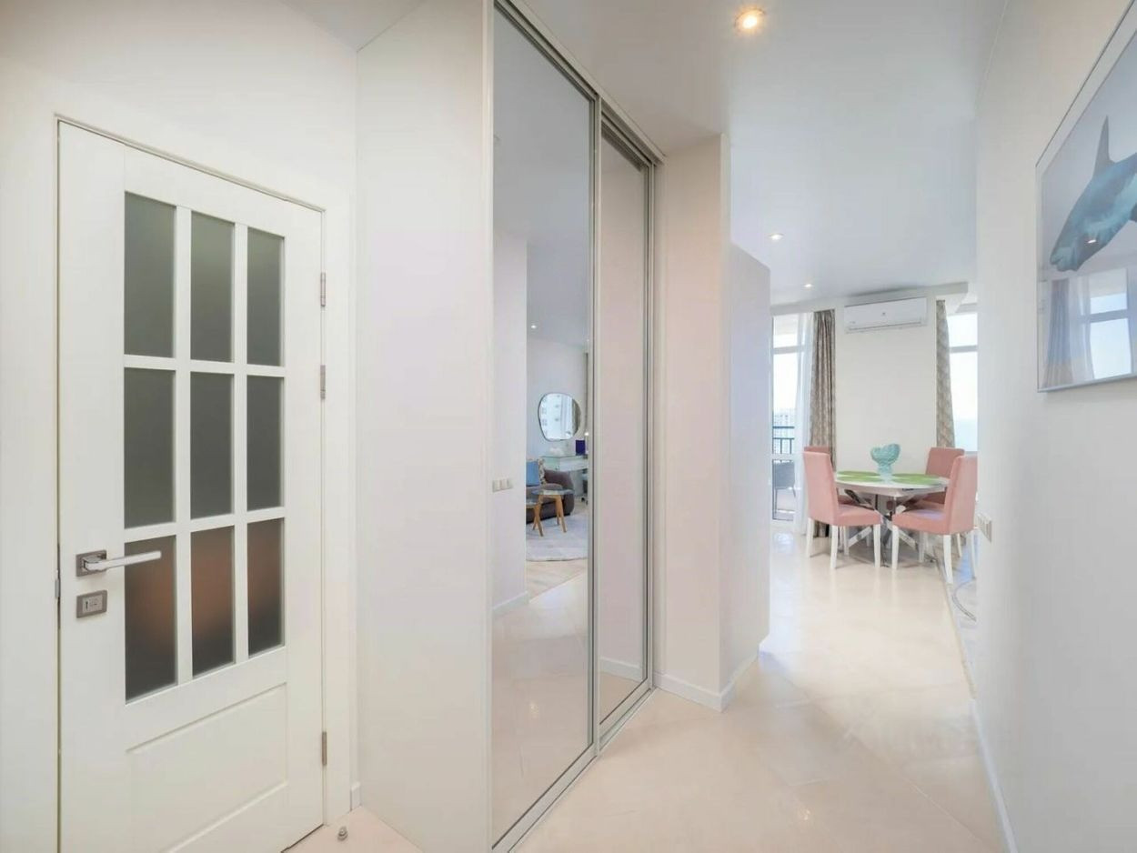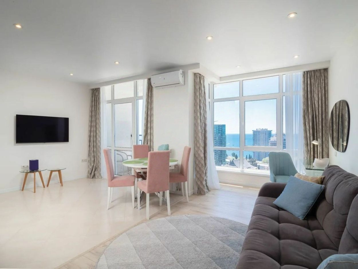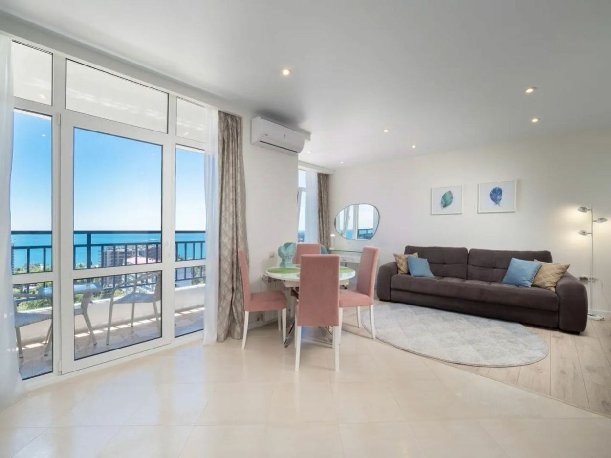 Продам квартиру в доме бизнес-класса. Охраняемая территория, двор без машин. Из окон квартиры открывается потрясающий вид на море и город, установлена дорогая мебель и техника.