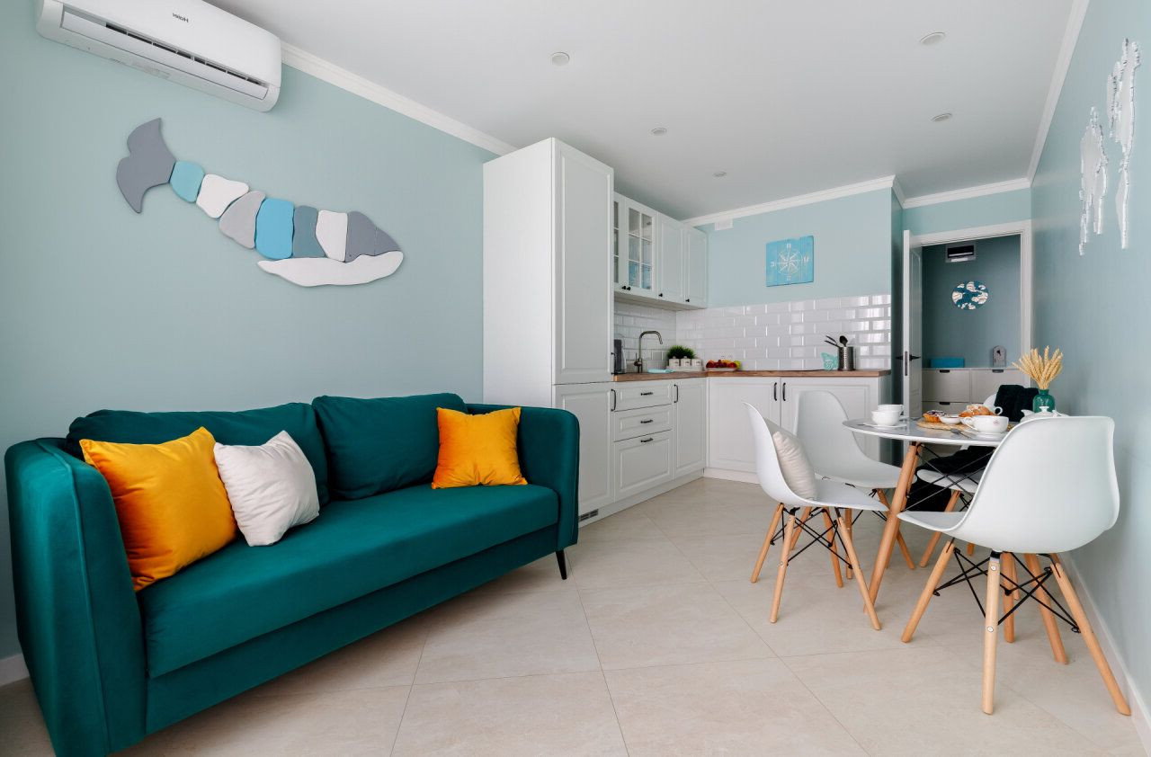 Жилая площадь составляет 32 квадратных метра, а кухня занимает 9 квадратных метров. В квартире выполнен качественный евроремонт, имеется совмещённый санузел. Из окон открывается вид на улицу.