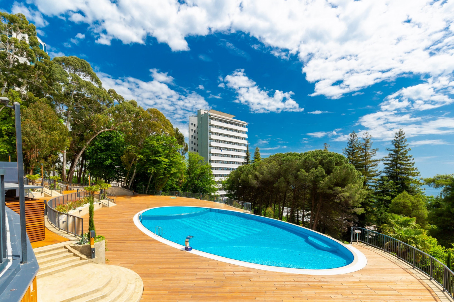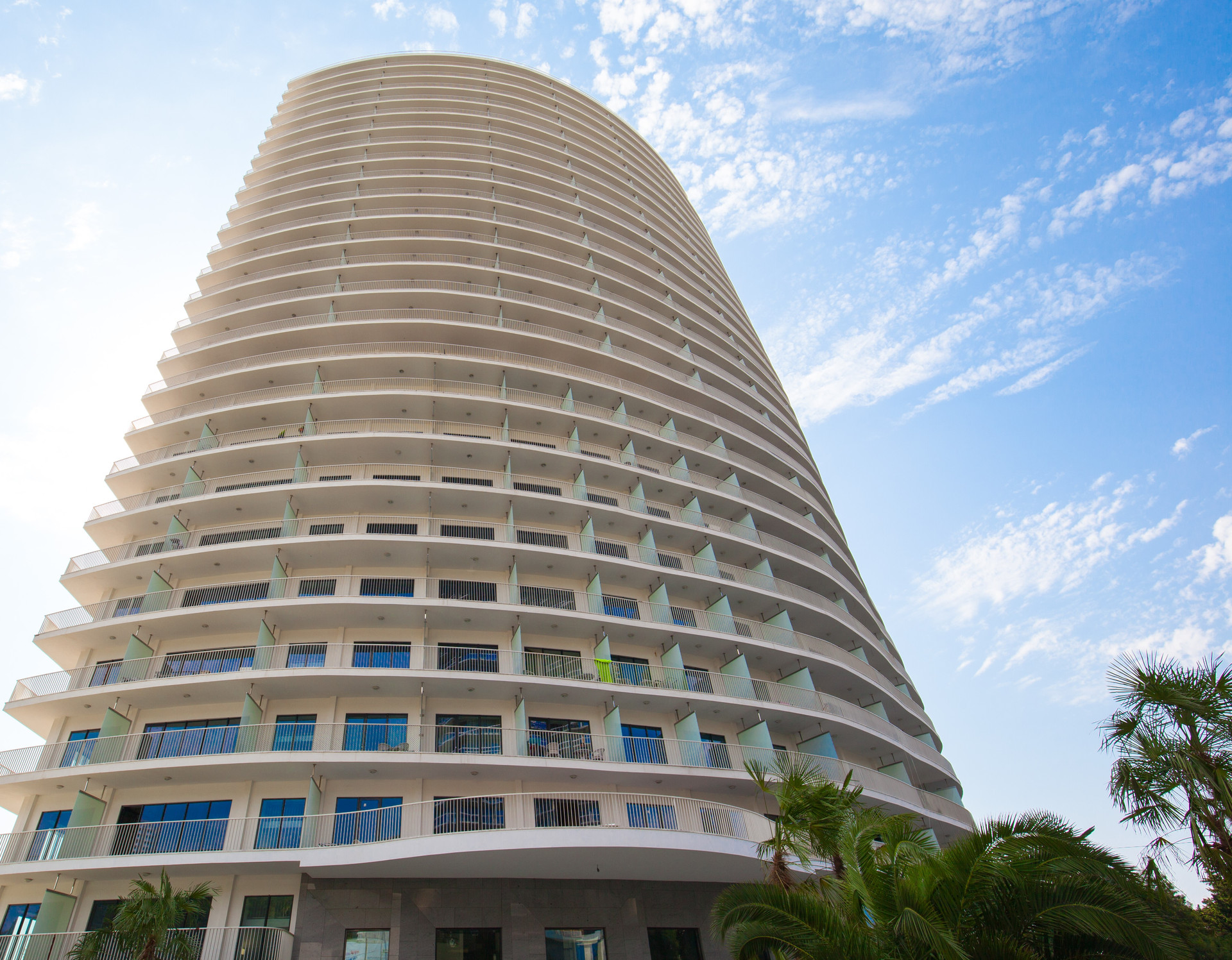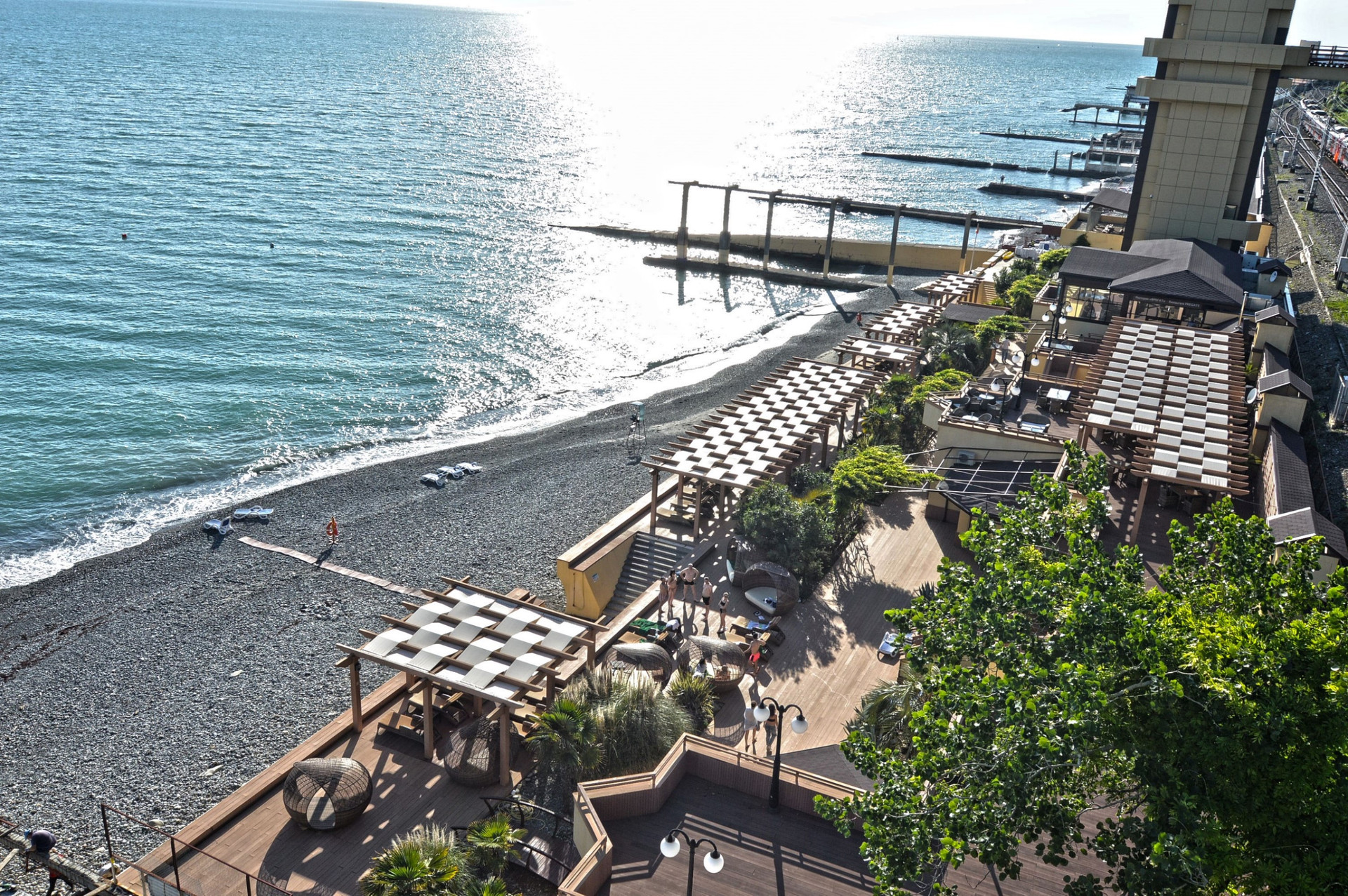 Территория Комплекса оформлена ландшафтным озеленением, большой бассейн с видом на море, тренажёрный зал, собственный охраняемый пляж, панорамные лифты «Otis» и так же на территории комплекса несколько престижных ресторанов.