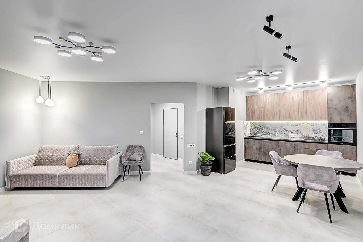 Выделена кухня — столовая, зона отдыха и просторная гардеробная.