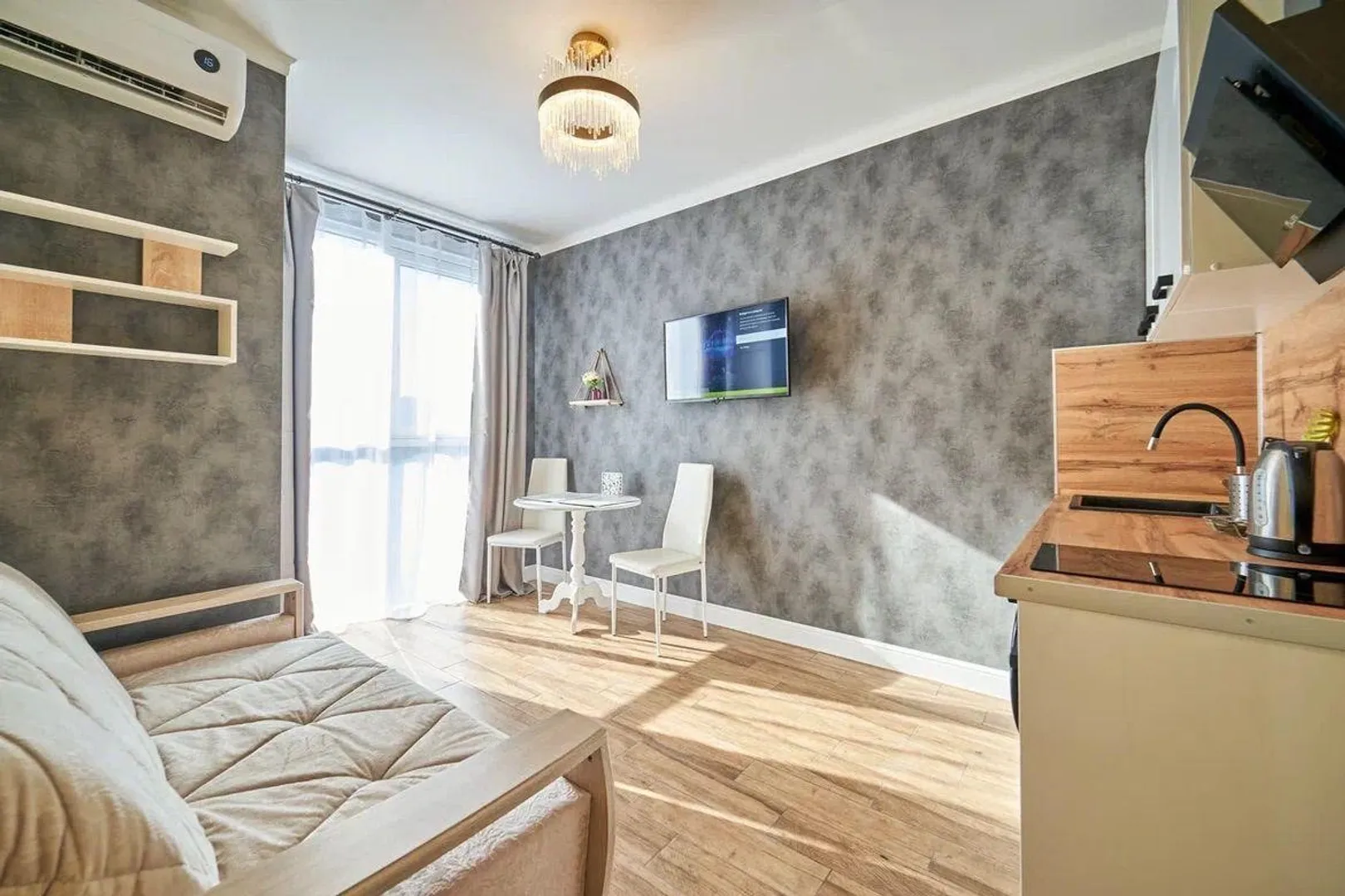 В квартира с выполненным дизайнерским ремонтом - полностью укомплектована для жизни, мягкая мебель и техника остаются.