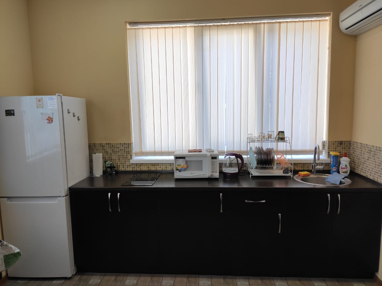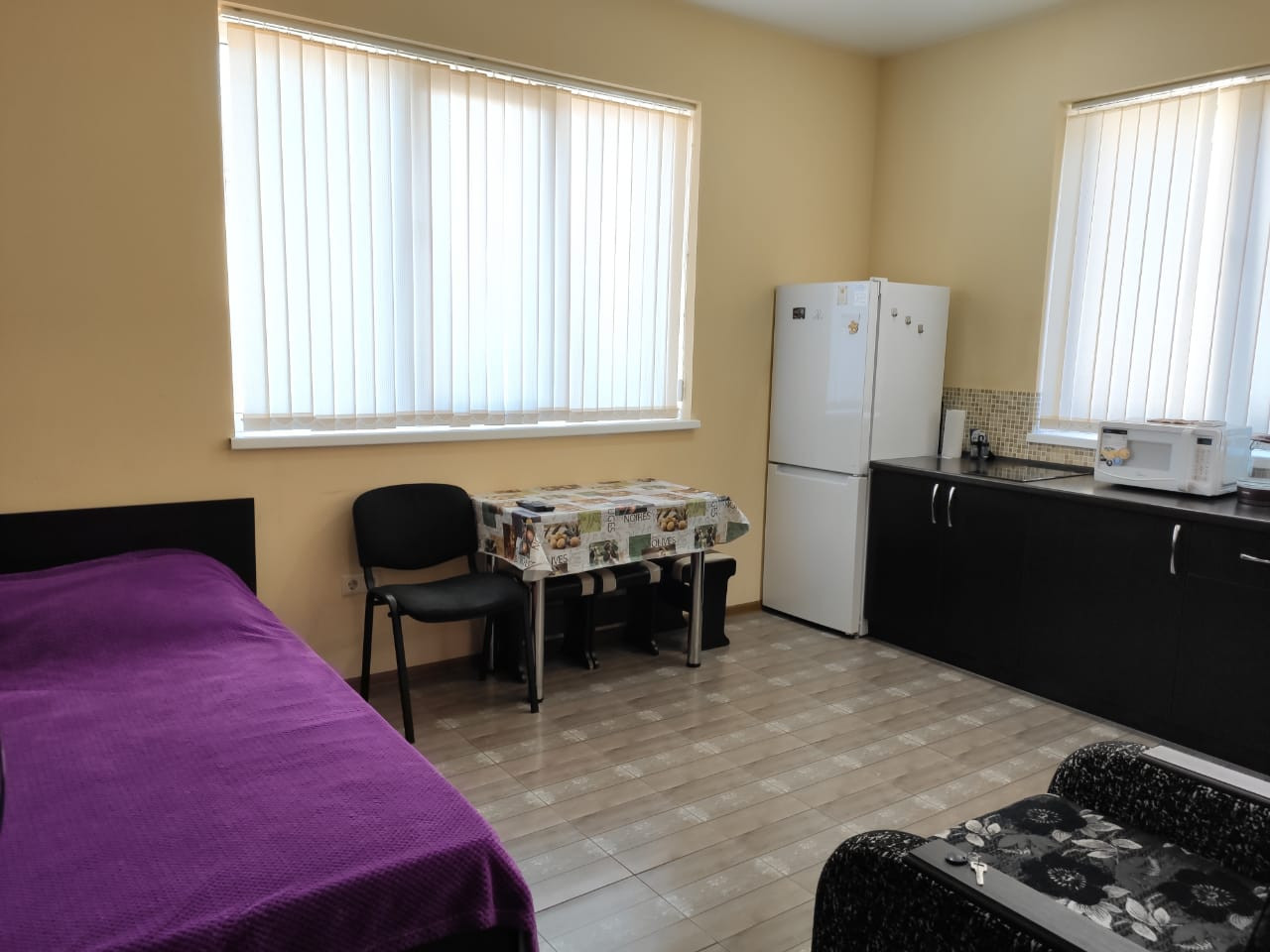 Квартира оборудована совмещенным санузлом и выполнена в стиле евроремонта. Окна квартиры выходят на улицу, с видом на море. В квартире два окна,благодаря чему внутри всегда достаточно света. Имеется теплые полы, что создает комфорт зимой.