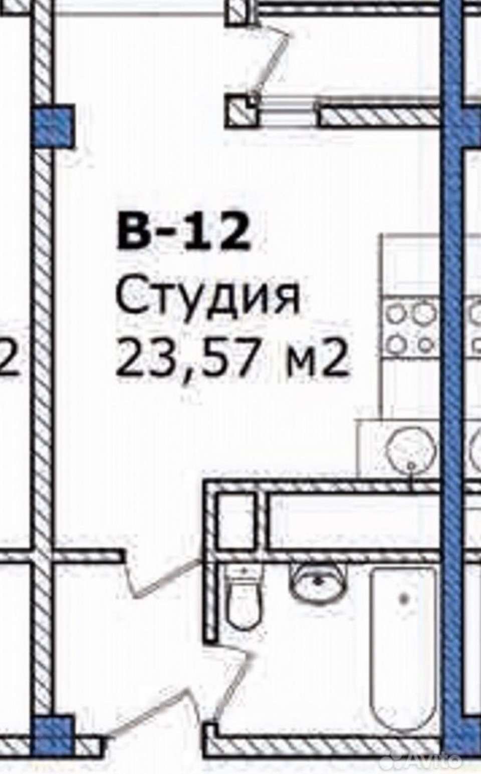 Общая площадь 23.57 м2