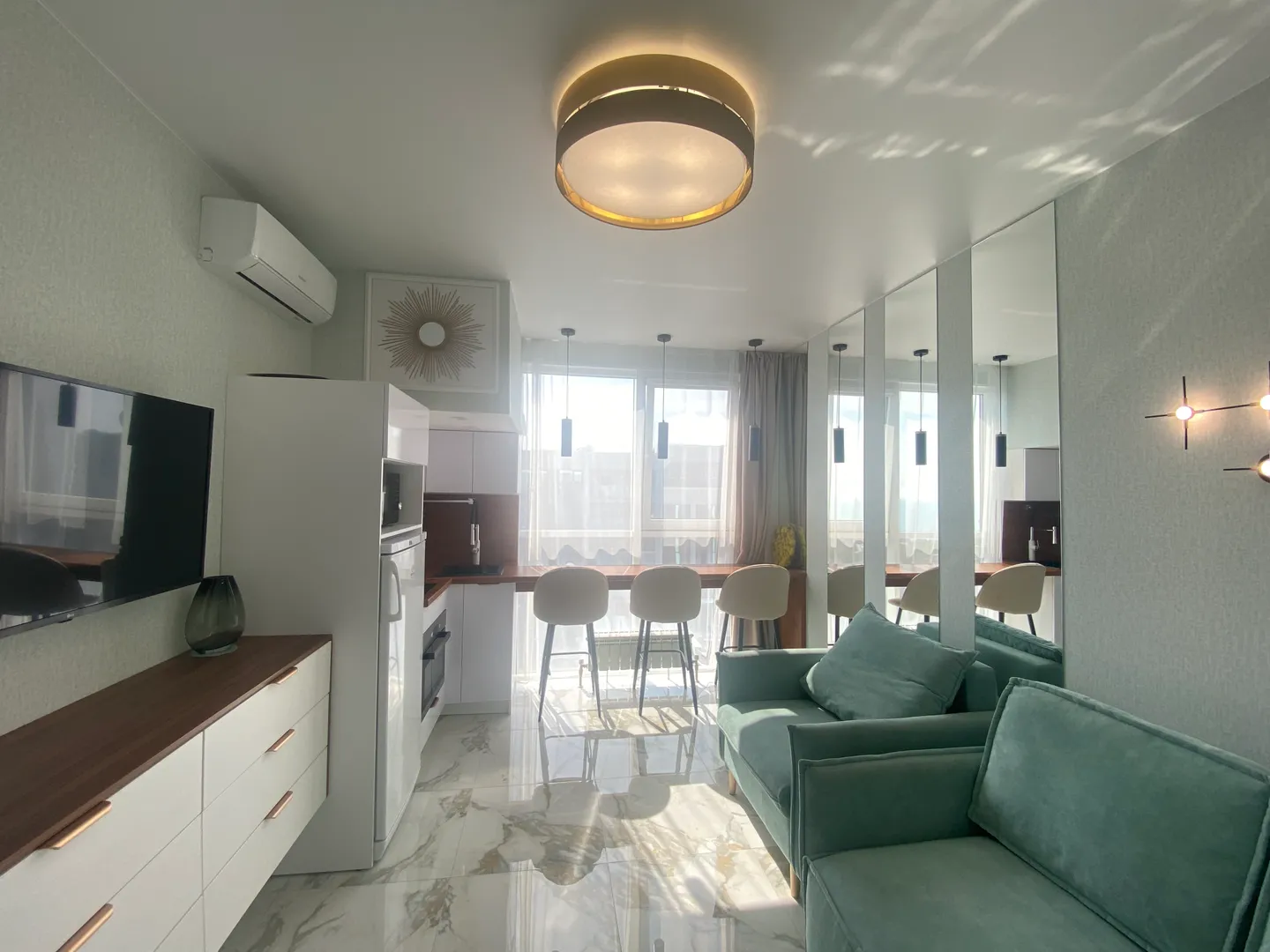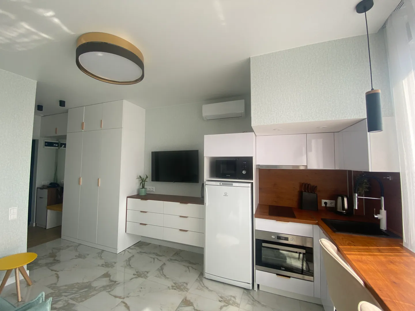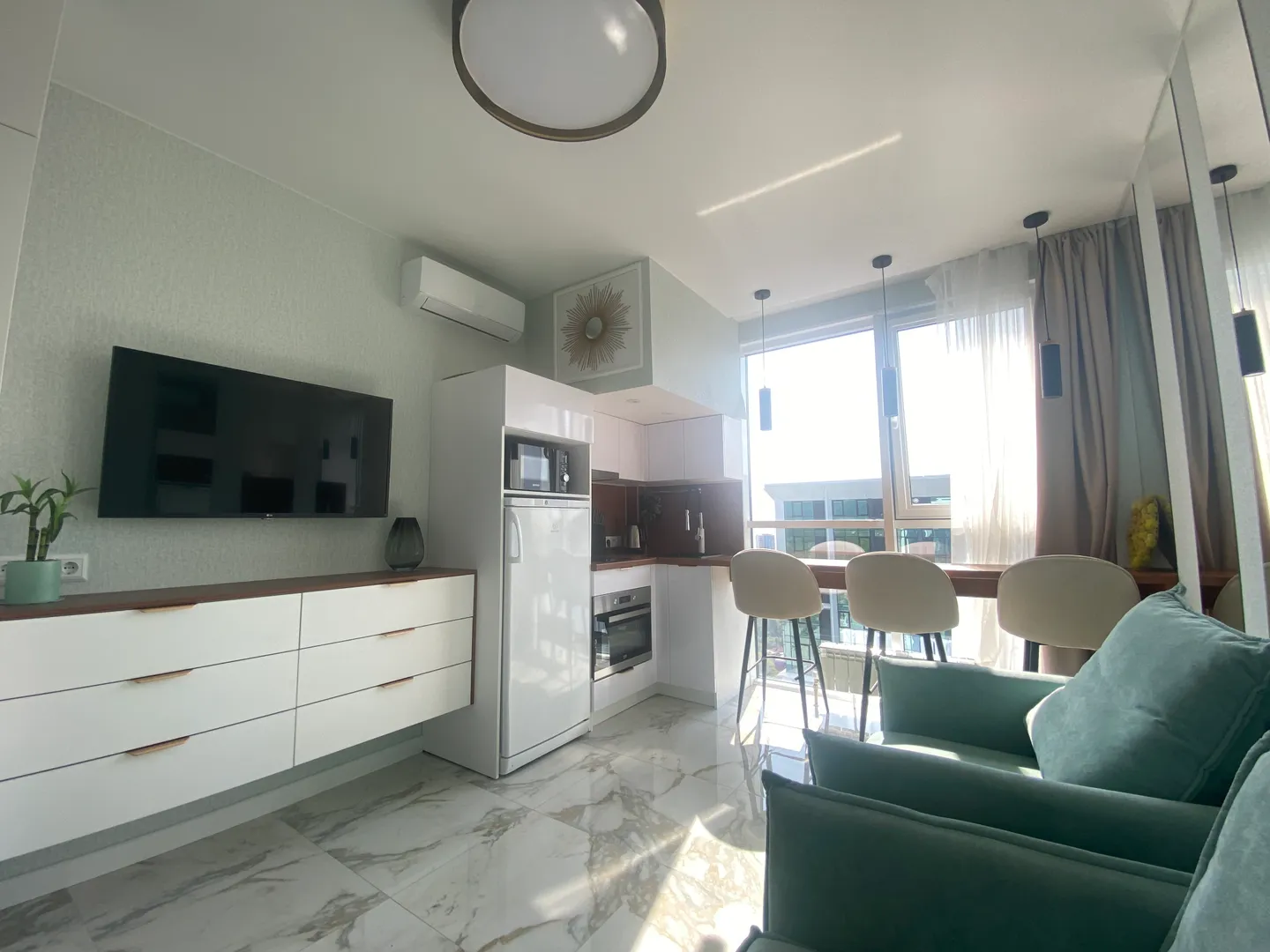 В квартире светлый современный ремонт, спальное место удобный раскладной диван, раскладное кресло.