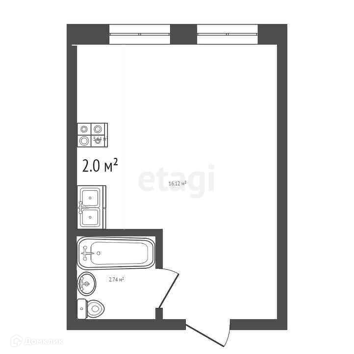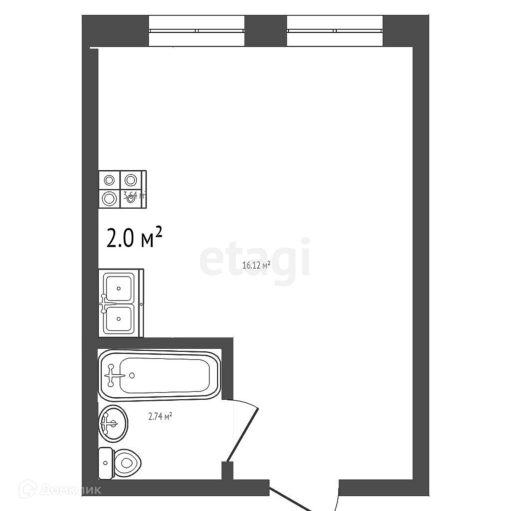 Площадь кухни 2 м2