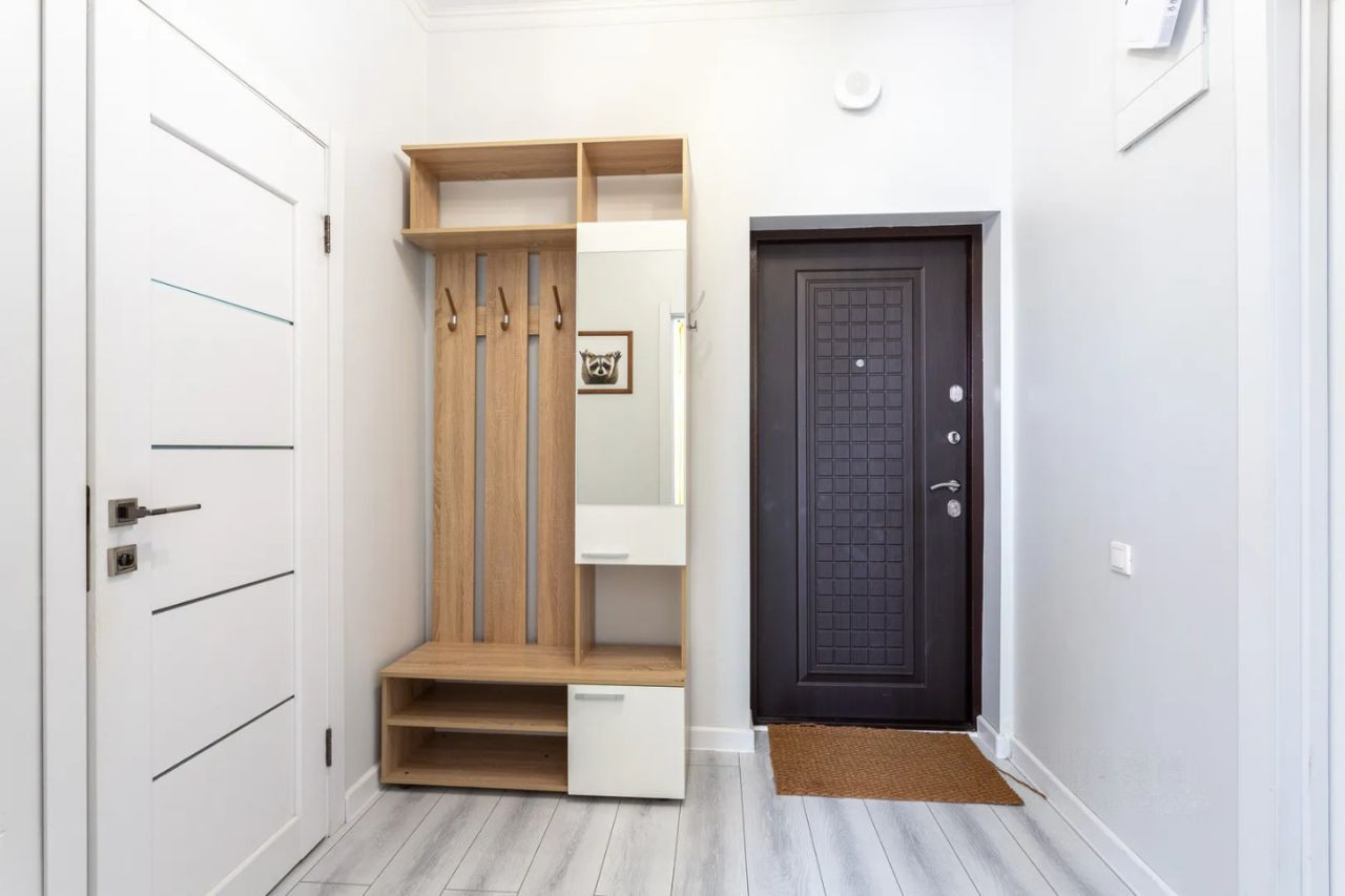 Внутри квартиры вас ждёт дизайнерский ремонт, выполненный с любовью и вниманием к деталям. Жилая площадь составляет 27 квадратных метров, а кухня занимает 10 квадратных метров, предоставляя достаточно места для приготовления пищи и семейных ужинов.