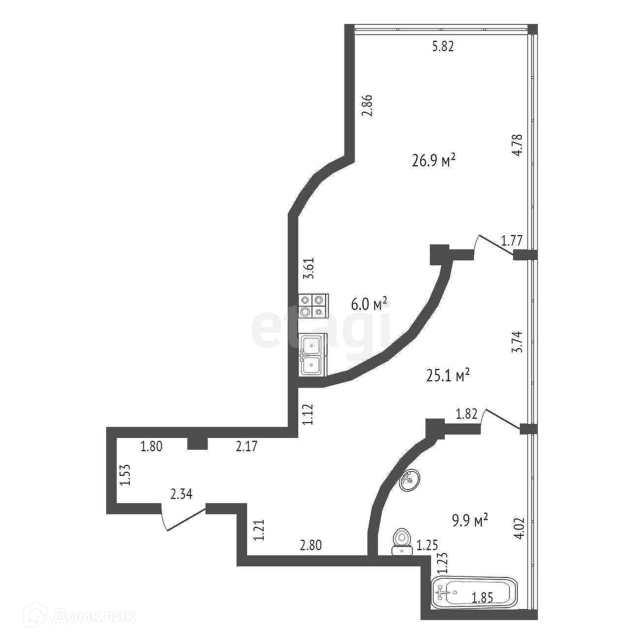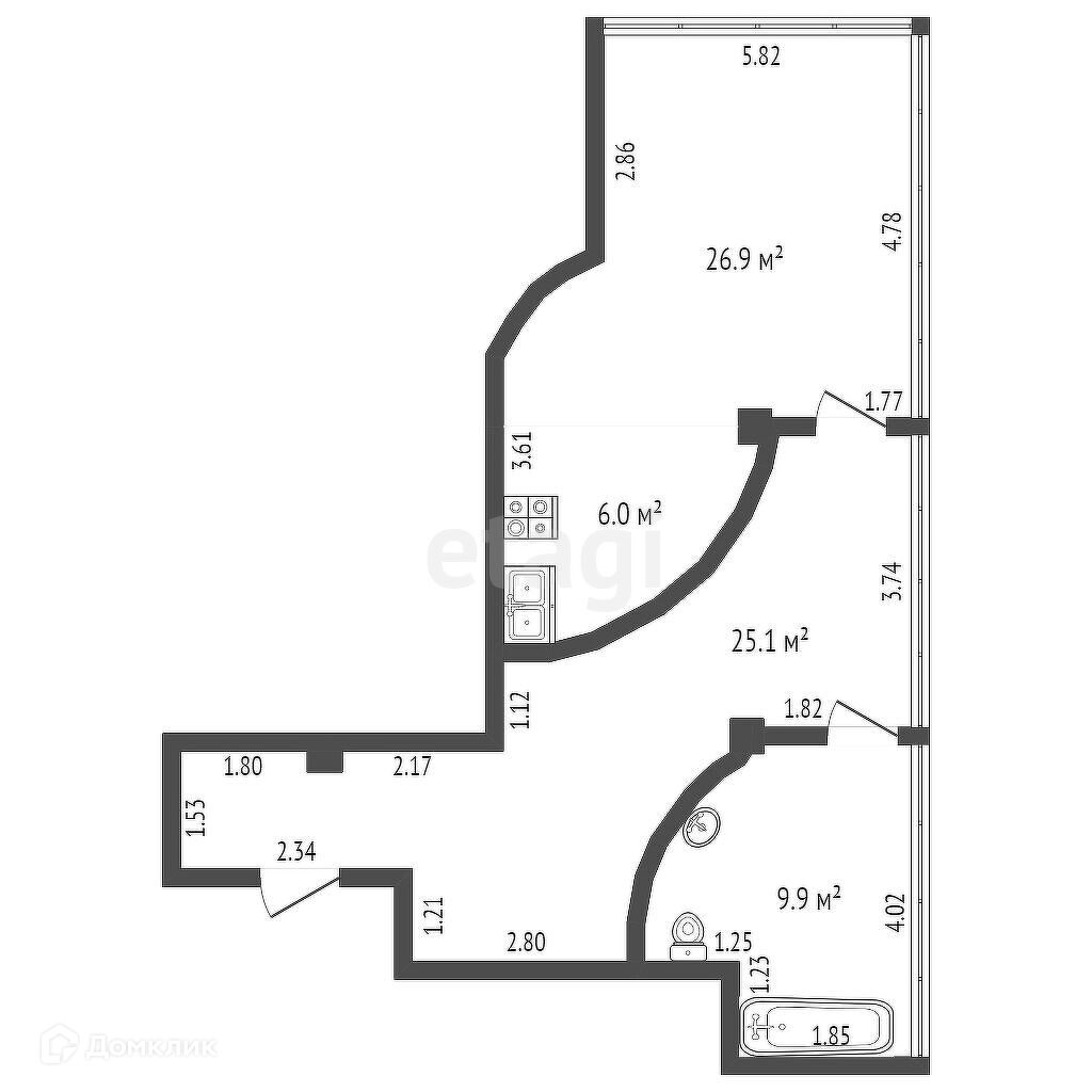 Общая площадь 61.9 м2