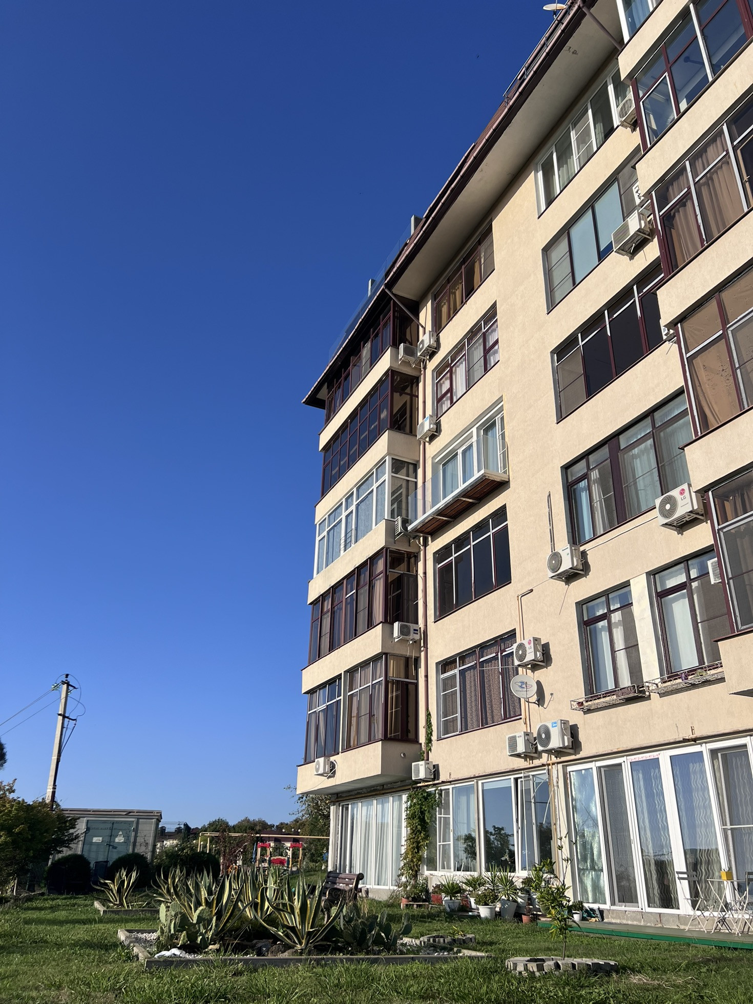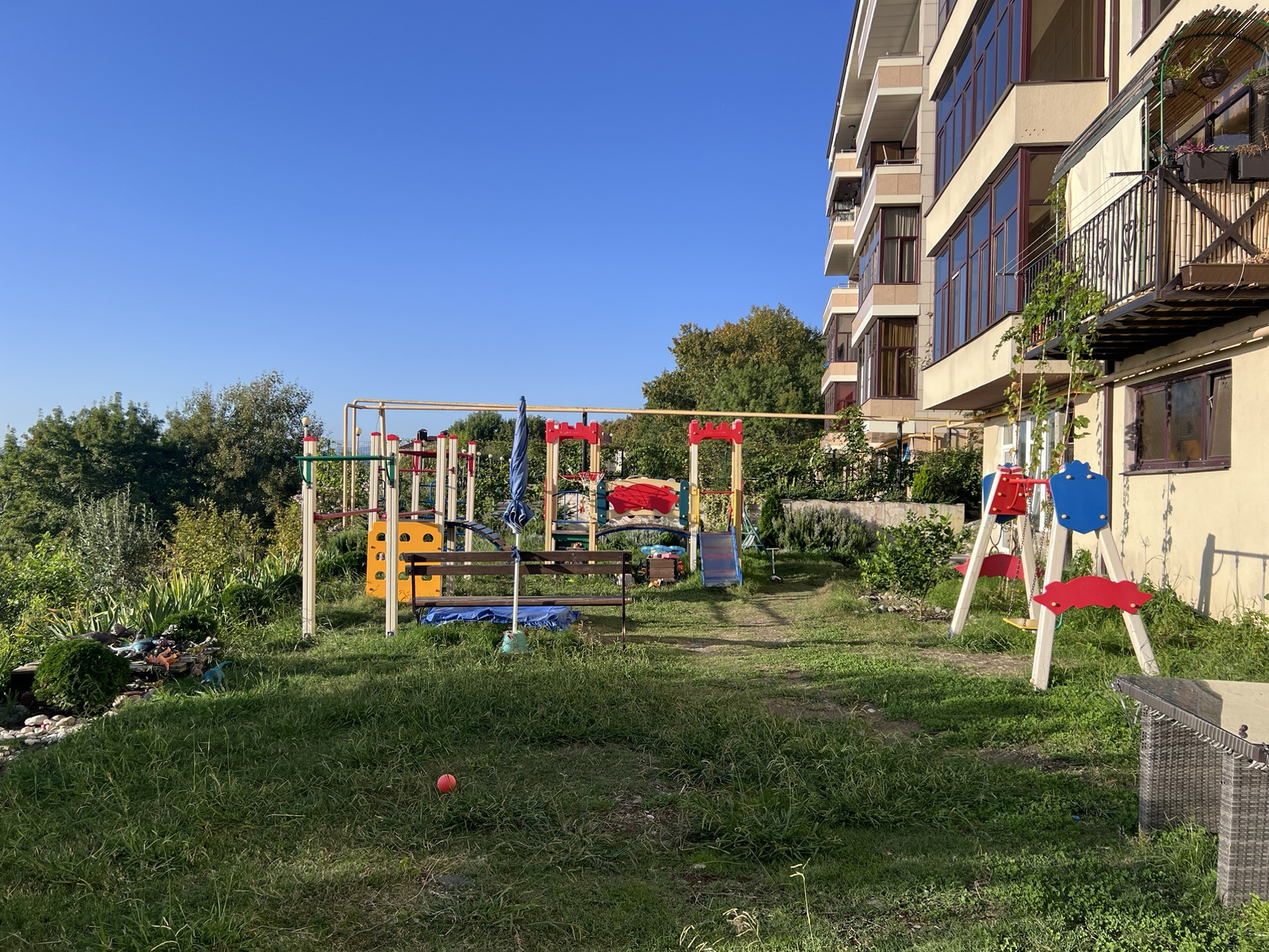 У дома красивая ухоженная зелёная зона отдыха для жильцов (огорожена)и детская площадка.