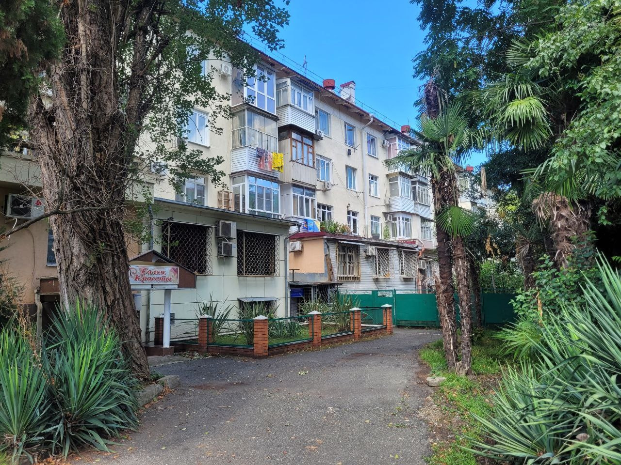 Тихий центр для истинных ценителей. Живописный Сочи  старого 3-5-этажного образца, утопающий в зелени! В пешей доступности: крупные торговые центры города - ТЦ Моремолл, Александрия, центральный рынок, парк Ривьера. В пределах 20-25 минут неспешным шагом по набережной можно прогуляться до городского пляжа (парк Ривьера) или морского вокзала и черноморской набережной. Железнодорожный и автовокзалы Сочи находятся в 25 минут ходьбы от дома.
