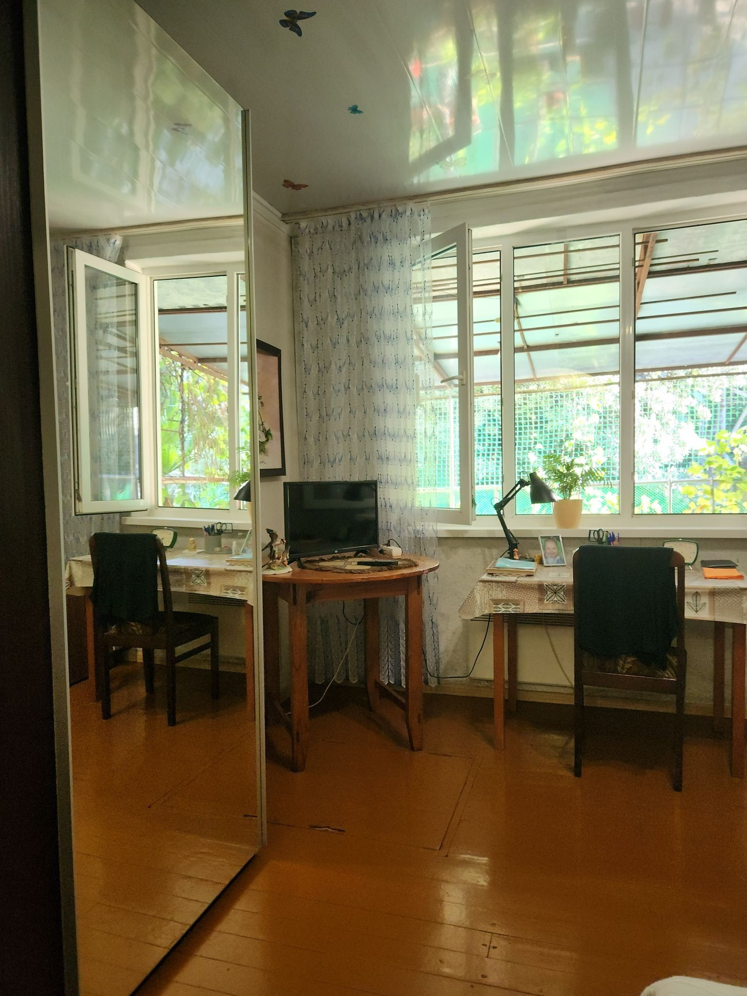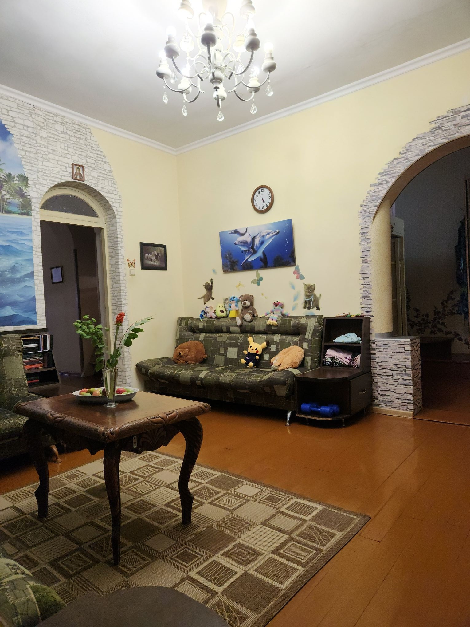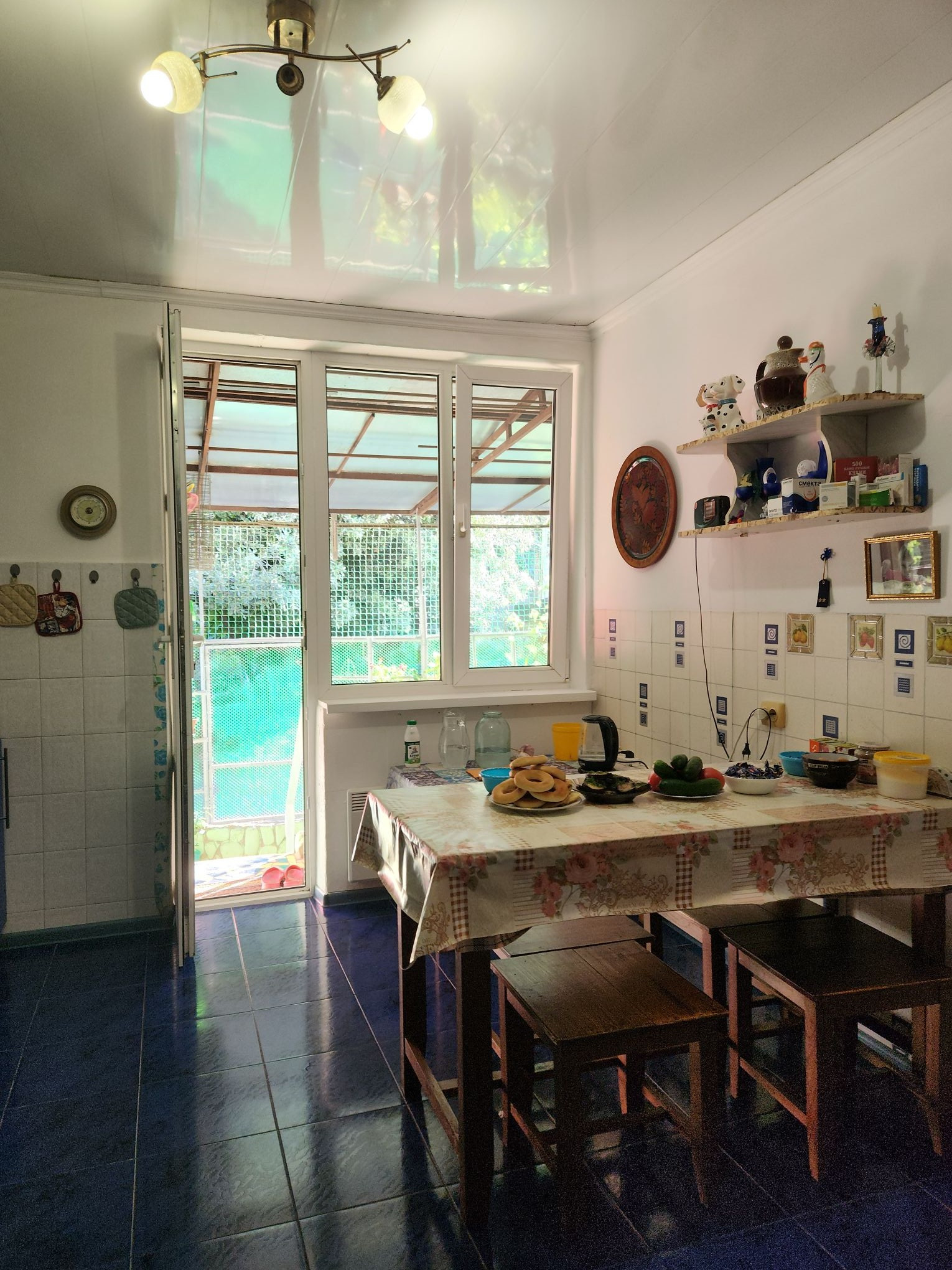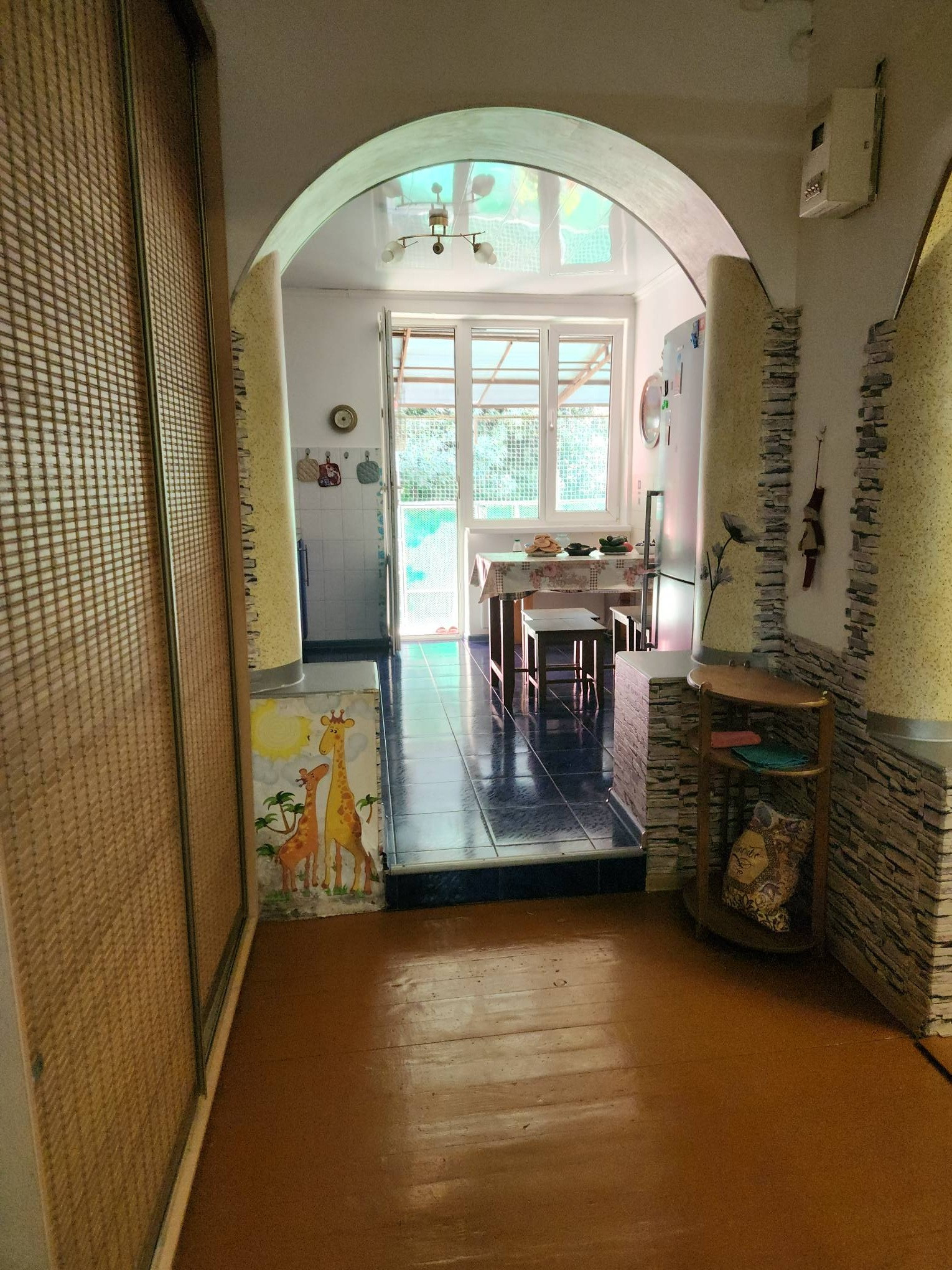 Есть не большой свой дворик. КВАРТИРА: 93м², просторная, высокие потолки 3м, частично тёплые пол, 2 с/у, 3 комнаты ( 11 спальных мест), статус квартира!