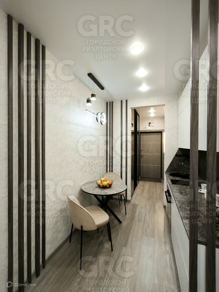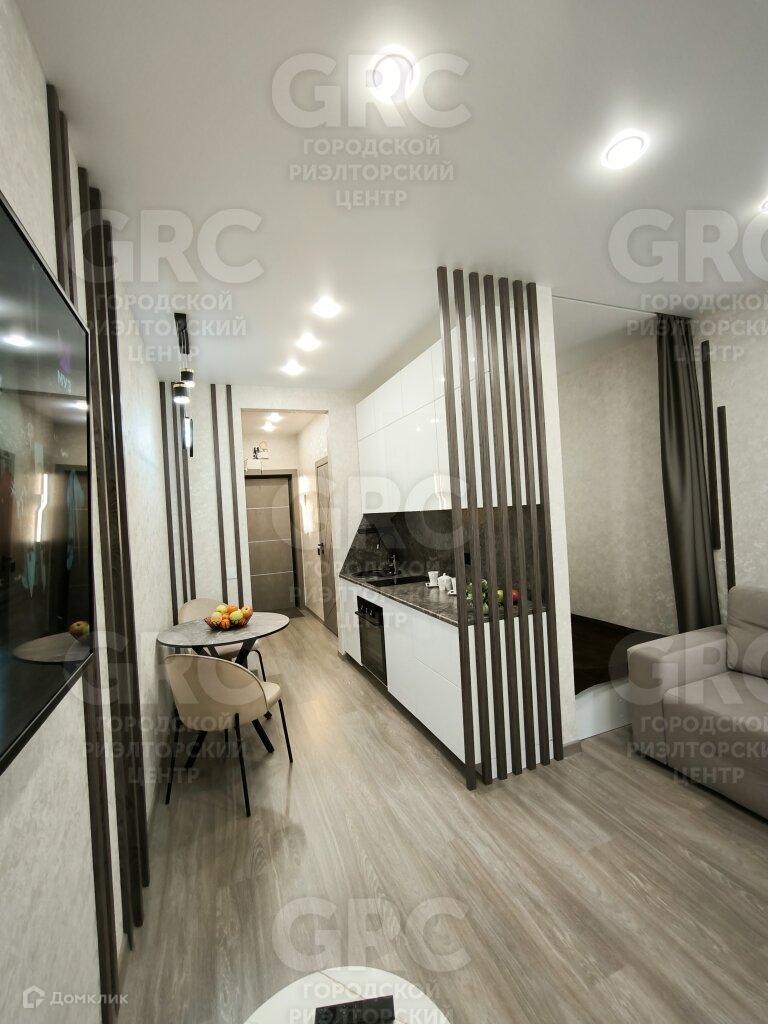 Внутри студии есть все необходимое для комфортного проживания. Она оборудована современной кухней, где вы сможете приготовить свои любимые блюда, а также просторной гостиной зоной, где вы сможете отдохнуть после долгого дня. Большие окна пропускают много света, что создает ощущение простора и уюта.