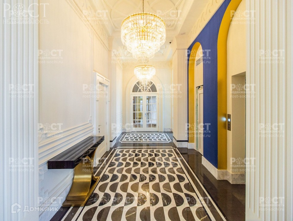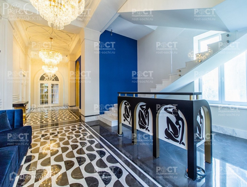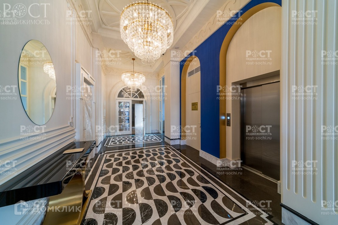 - Просторные холлы полностью отделаны мрамором. Два лестничных марша, лифт. В ванной комнате на полу уложен натуральный мрамор.