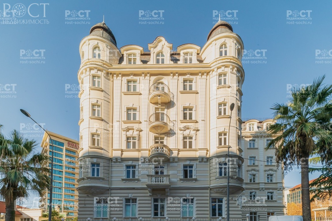- Эксклюзивный статус и исключительное соседство. Само здание отличает уникальный для Сочи архитектурный стиль. Фасад здания выполнен в стиле Барокко.