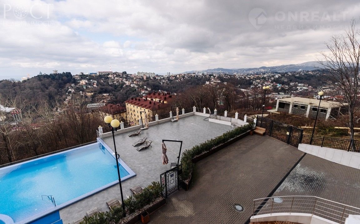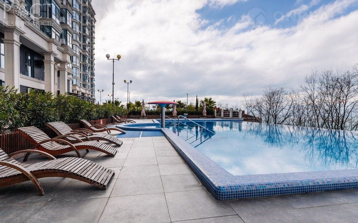 Закрытая охраняемая придомовая территория с профессиональными спортивными и детскими площадками, тренажерным залом, бассейном с панорамным видом, зоной для отдыха, ландшафтным озеленением. На территории крытый и открытый паркинг. Фасад здания и места общего пользования ЖК выполнены в современном дизайнерском стиле, из высокопрофессиональных материалов. С комплекса открывается потрясающий вид на море и город уже с первого этажа.