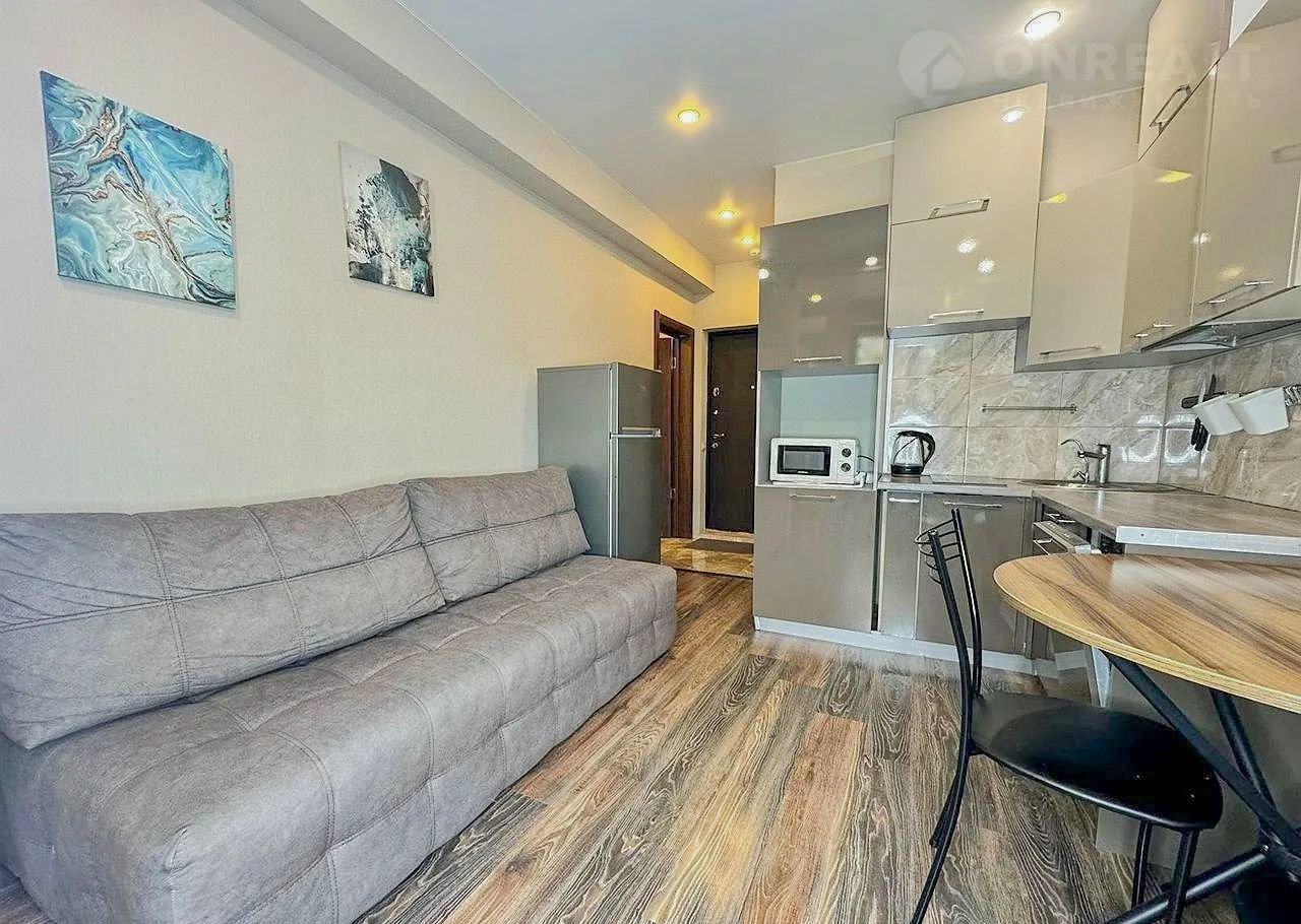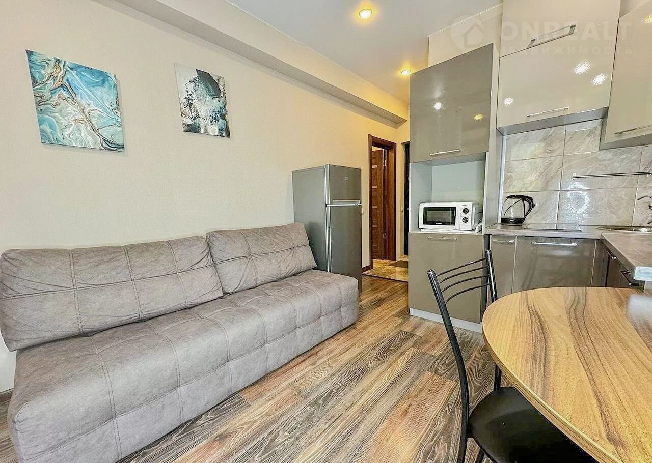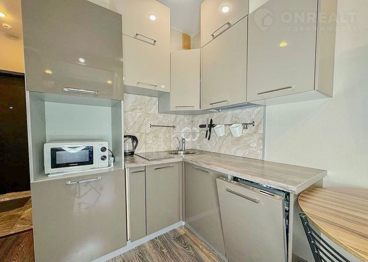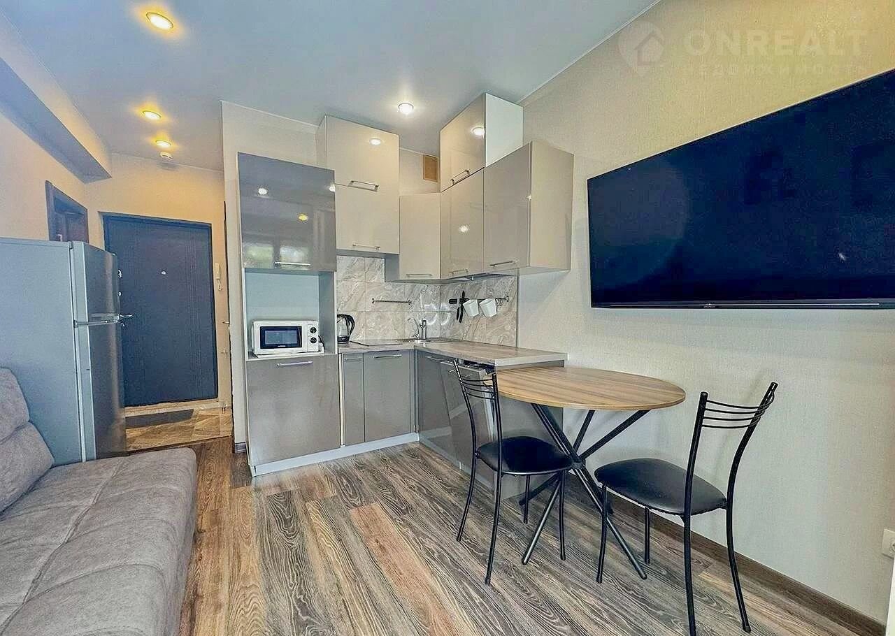 Площадь 28 м², продуманная планировка: кухня соединенная со спальной зоной, балкон, совмещенный санузел. Ремонт в отличном состоянии, установлены вся мебель и техника — всё остаётся новым собственникам. Можно сразу заехать или сдать в аренду без вложений.