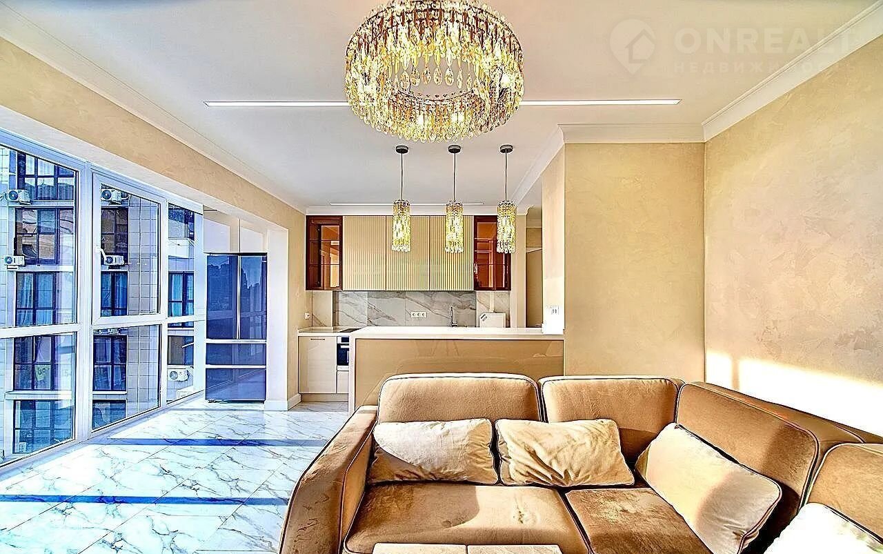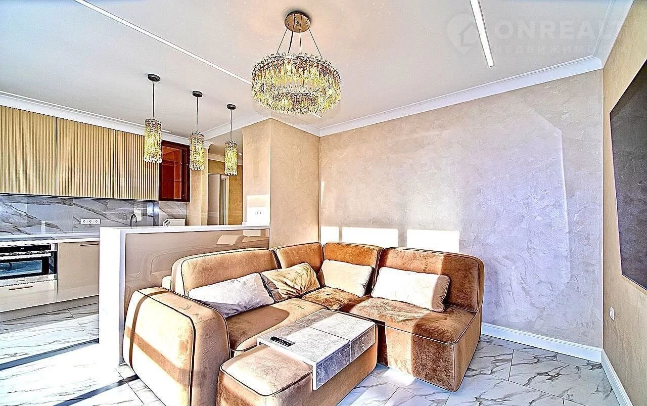 Планиpoвкa пpодумaна для комфoртной жизни: просторная кухня-гостиная с видом на море, отдельная изолированная спальня с лоджией и полноценная ванная комната. Выполнен дизайнерский ремонт с использованием качественных материалов. Мебель и техника остаются новому собственнику — заезжайте и живите.