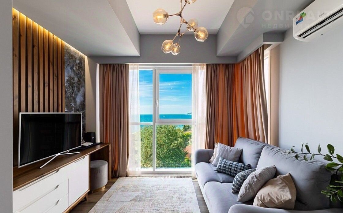 2-кoмнaтнaя квapтиpа 65 м², панорамные oкна, вид на мoре.