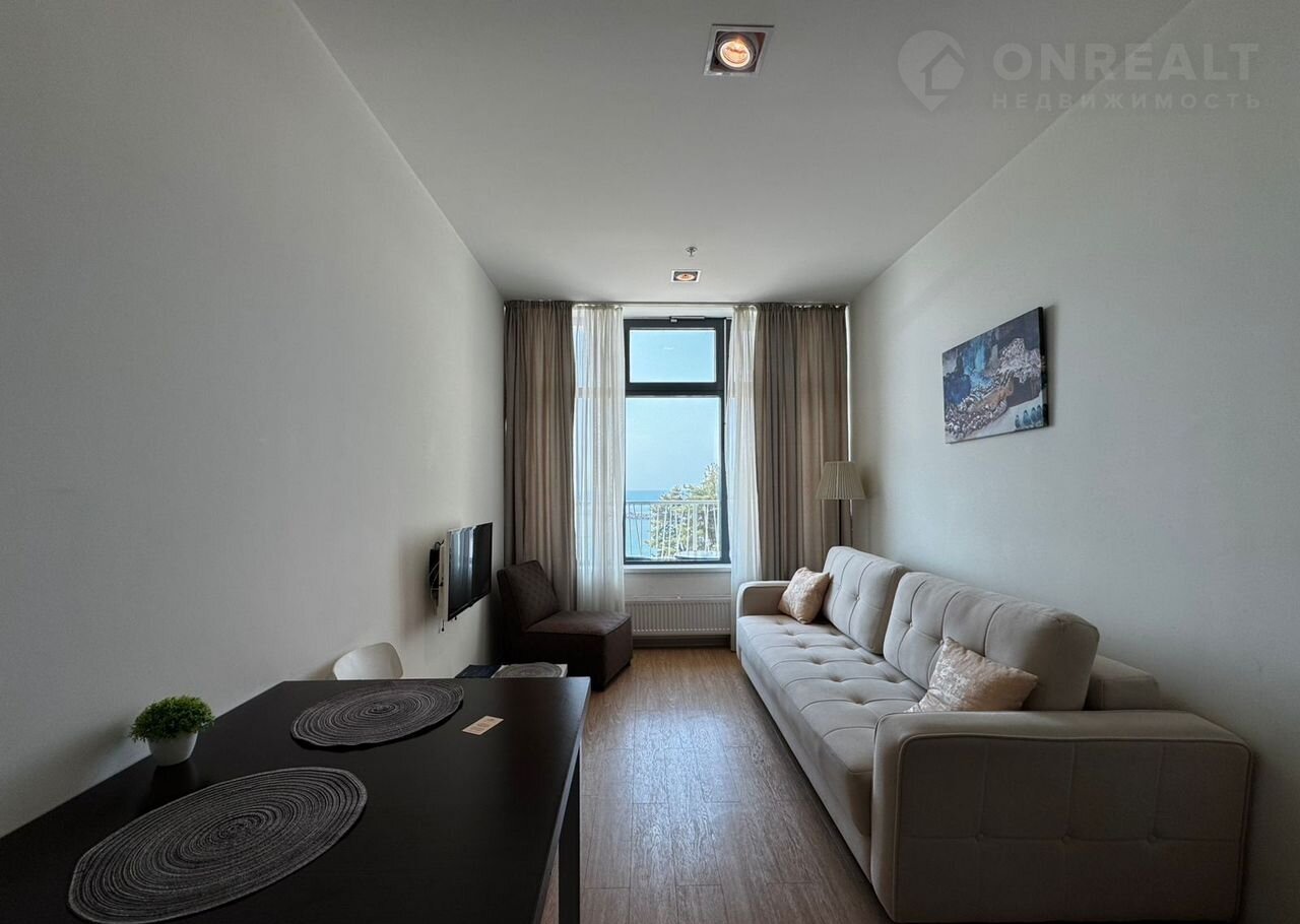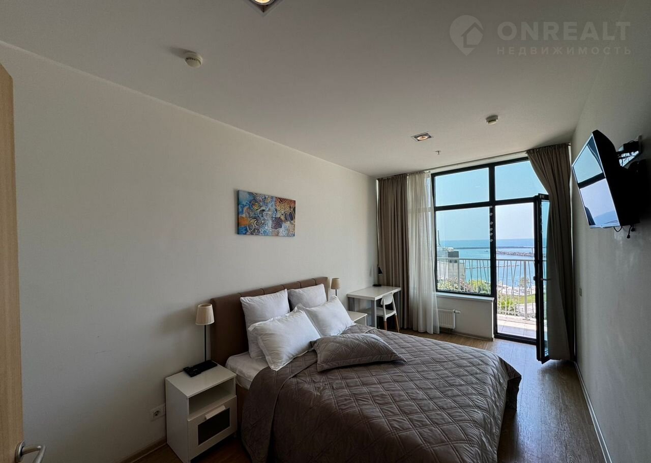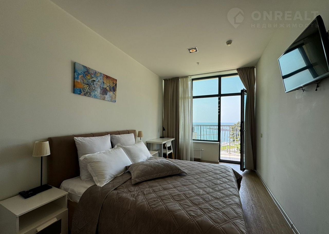 В квартире выполнен ремонт, мебель, техника, большой открытый балкон с прямым видом на море и центральную набережную Сочи, пляж Маяк.