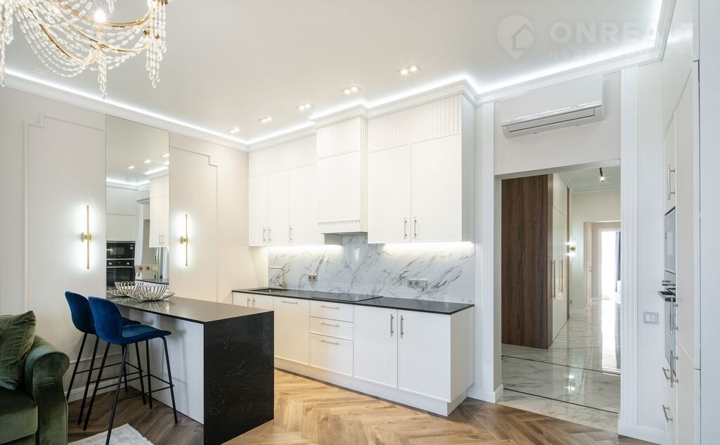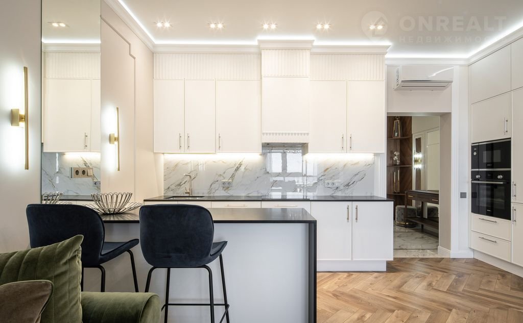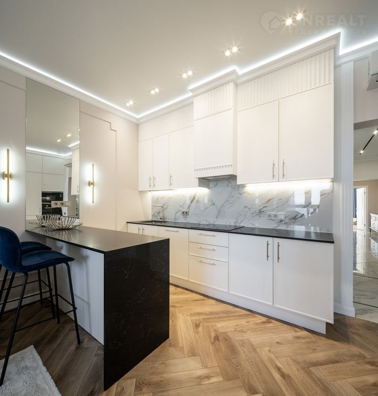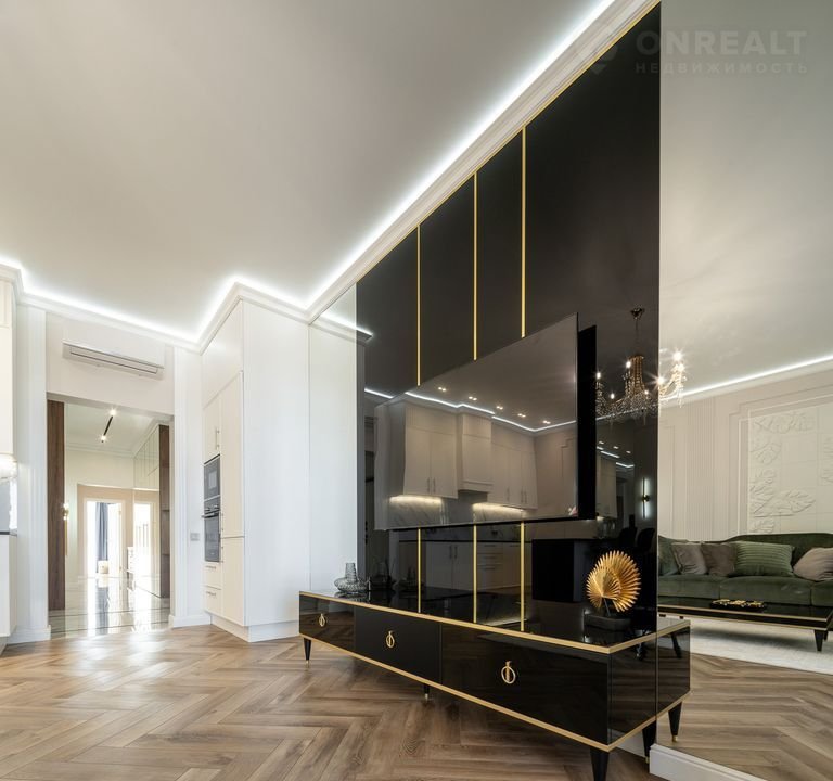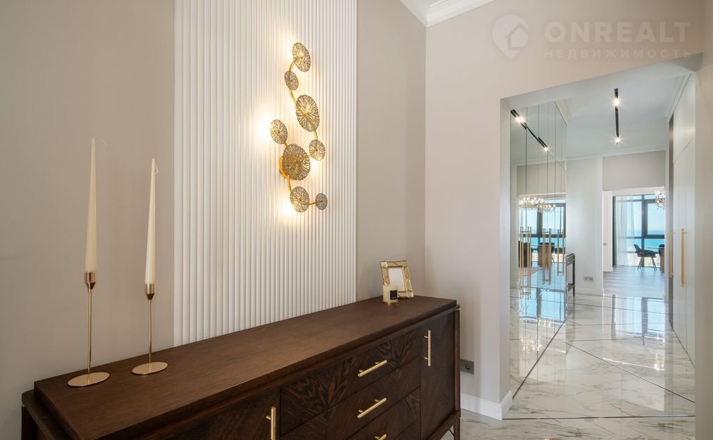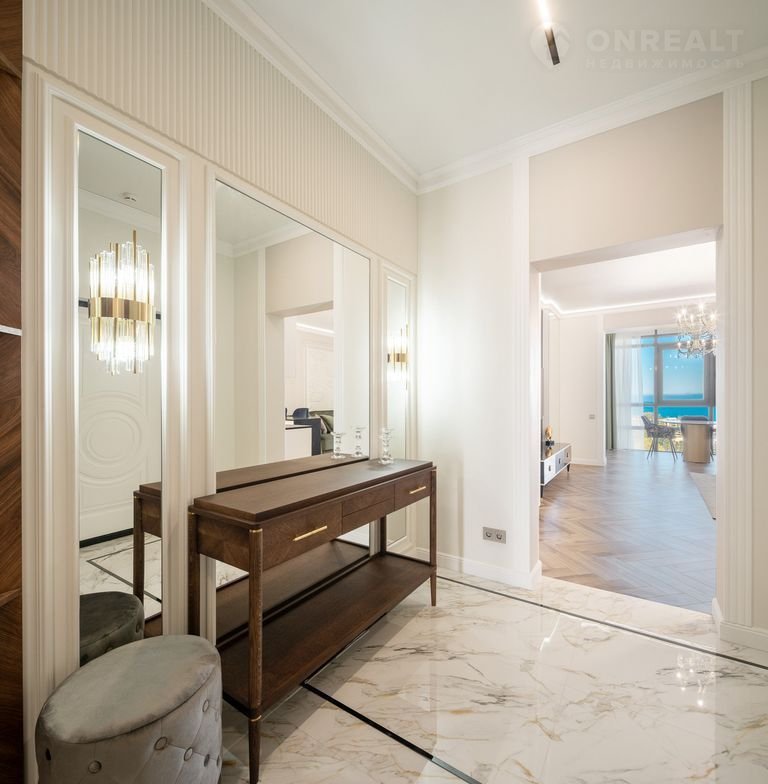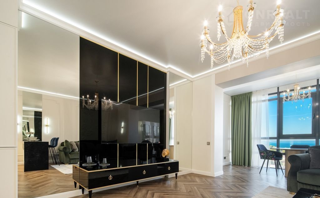 В квартире выполнен дизайнерский ремонт уровня Dеluхе с использованием брендовых материалов под контролем профессионального дизайнера. Установлена мебель из Италии, встроенная техника — производства Германии. Просторные окна открывают великолепный вид на море. Вся мебель и техника остаются новым владельцам — заезжайте и живите.