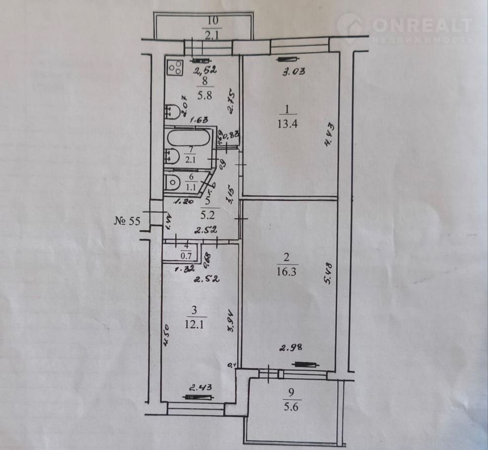 Общая площадь 56.6 м2