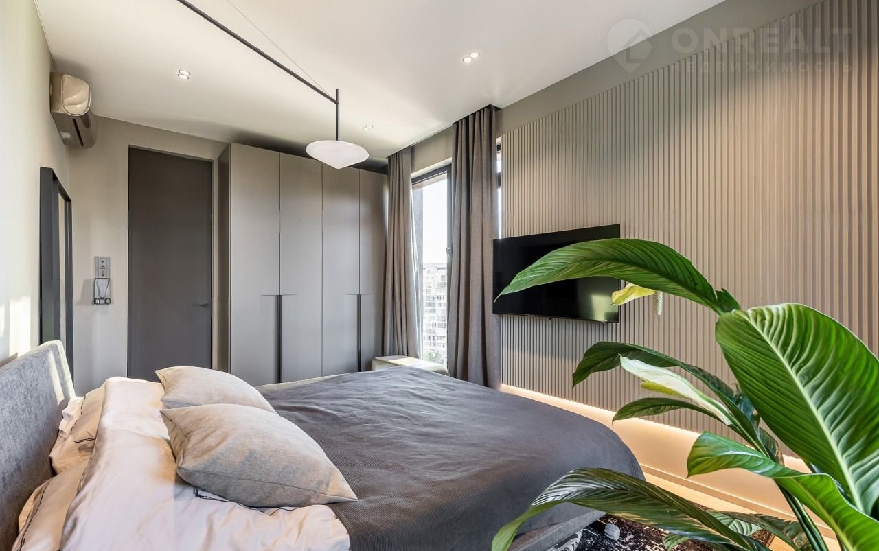 Планировка включает балкон, витражные окна и спальню. Установлены сплит-системы в каждой комнате, есть посудомоечная машина.