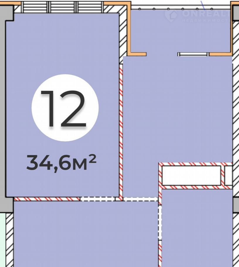 Общая площадь 34.6 м2