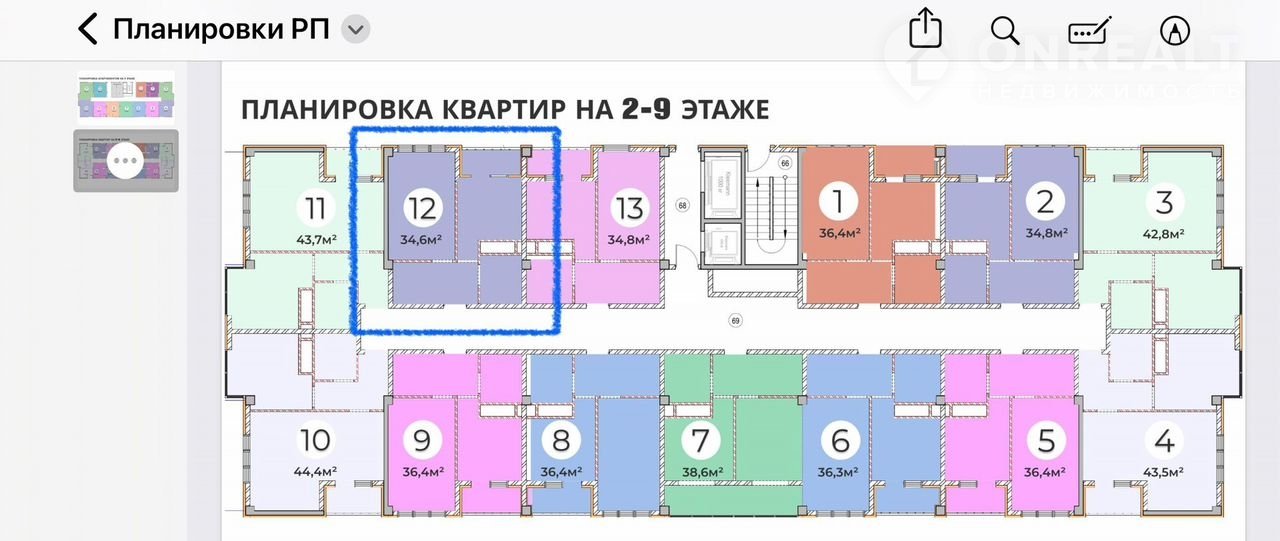 1-комнатная квартира, 34.6 м2, этаж 8 / 9, на продажу в Сочи, улица Цюрупы, 13Д