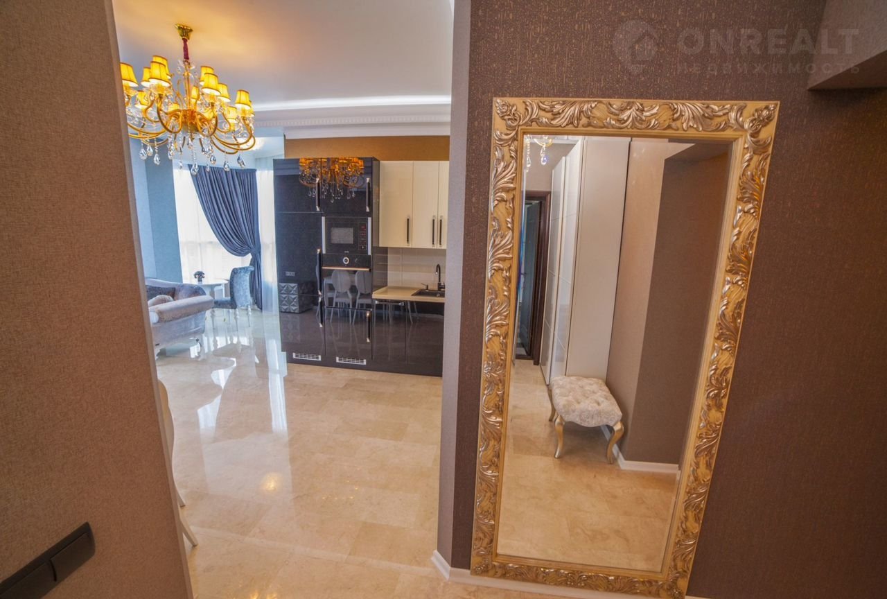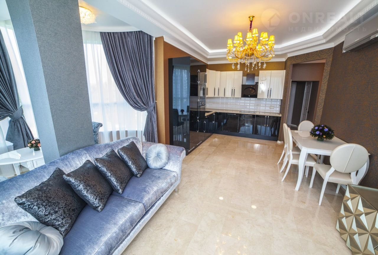 В квартире выполнен дизайнерский ремонт, мебель производства Италии, встроенная техника производства Германии, две спальни, кухня-гостиная и терраса с великолепным видом на море.