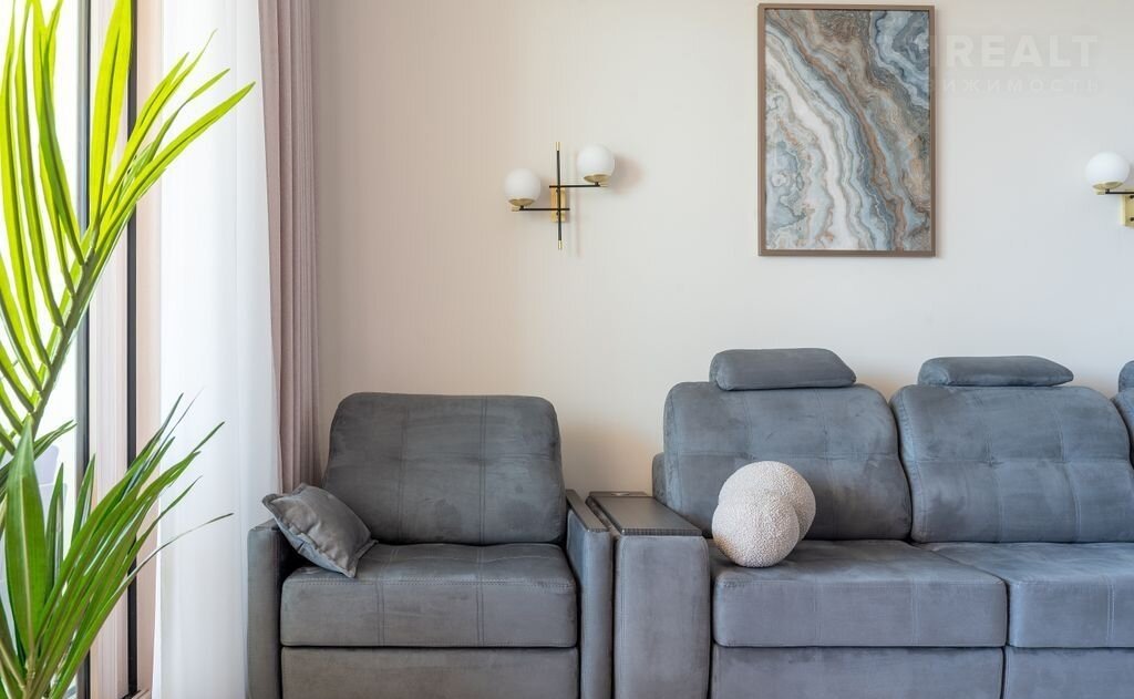 Кровать "king sizе" 180*200 см с ортопедическим матрасом гарантирует здоровый и крепкий сон. В гостиной раскладное кресло (спальное место 90*200 см), диван-реклайнер с электронным управлением, не разборный (спальное место 110*220 см);