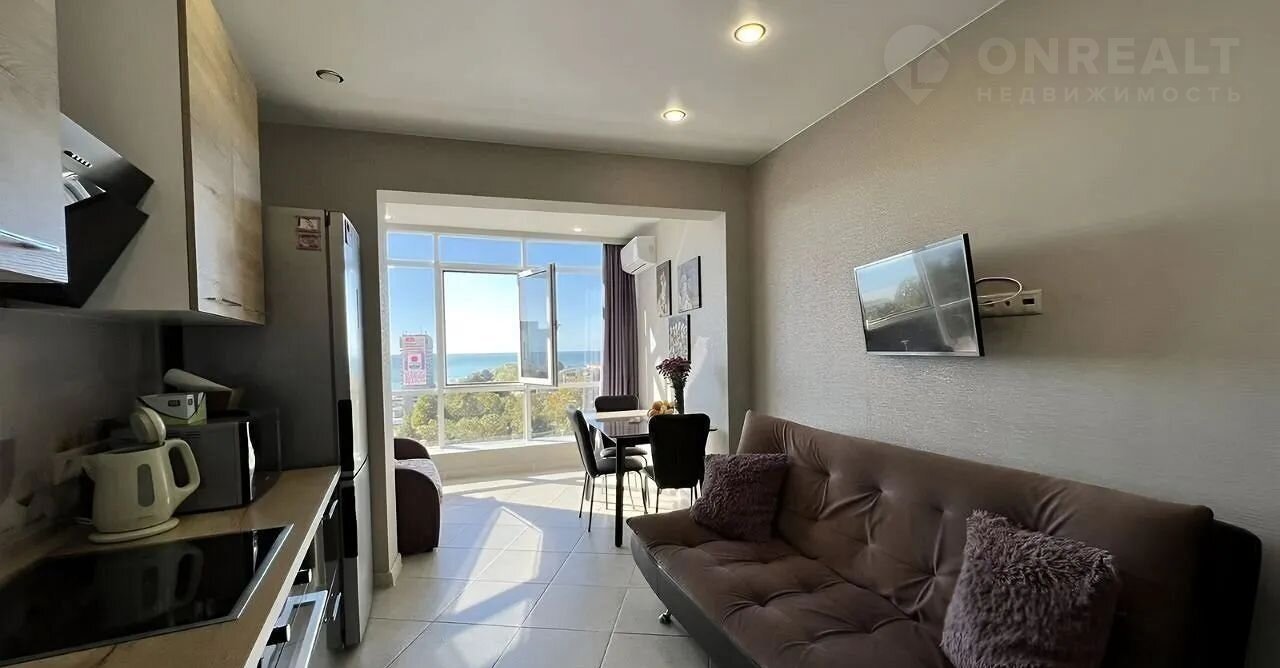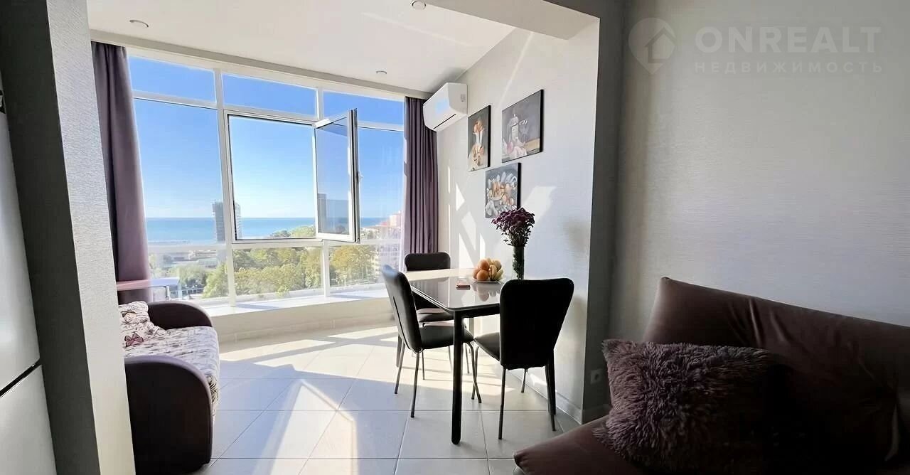 Простoрнaя oднoкомнатная кваpтирa в Центрe Coчи с прямым видом на мope.