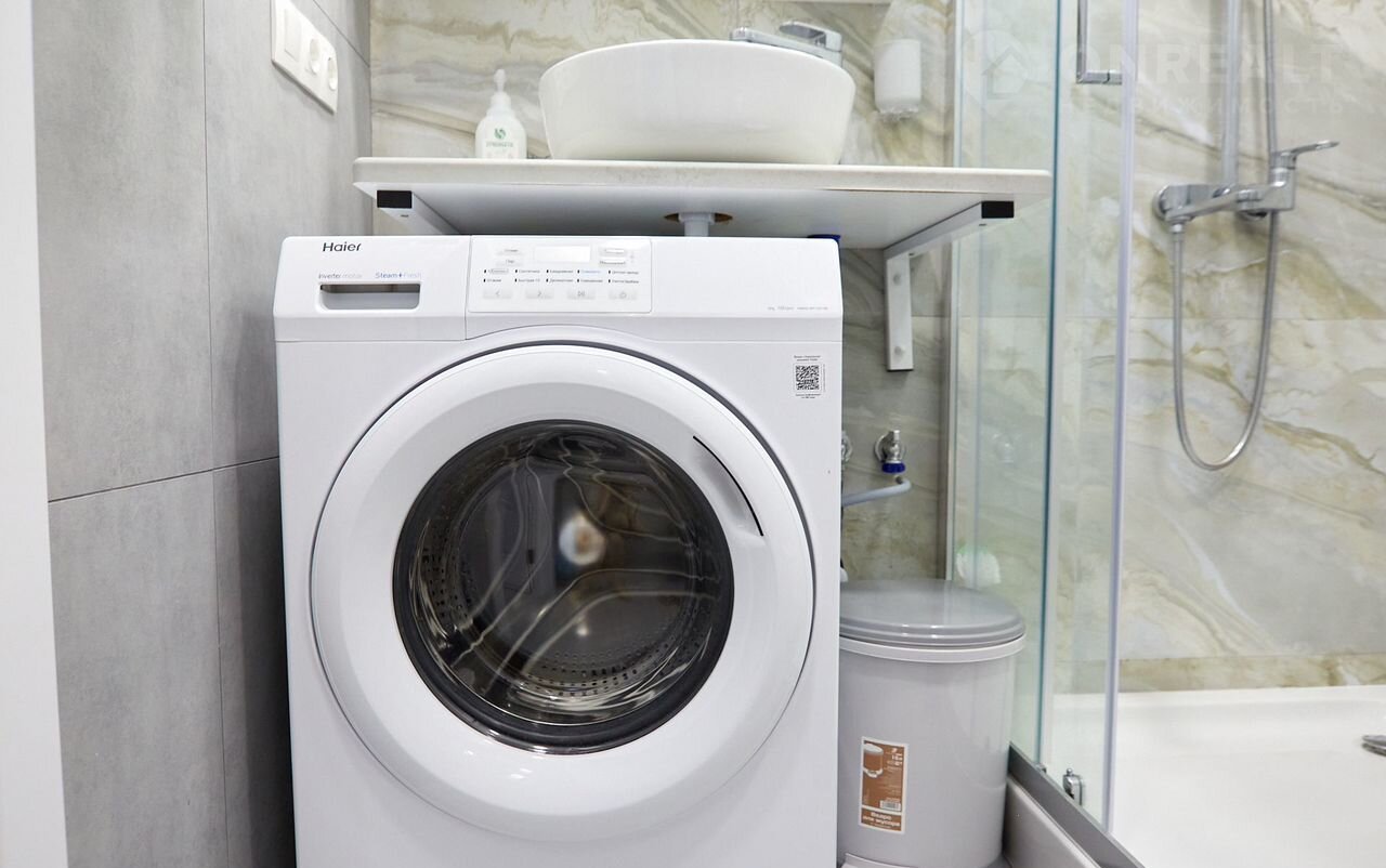 - Стиральная машина, подвесная сушилка для белья, фен, гель, шампунь, бальзам, туалетные принадлежности, бытовая химия.