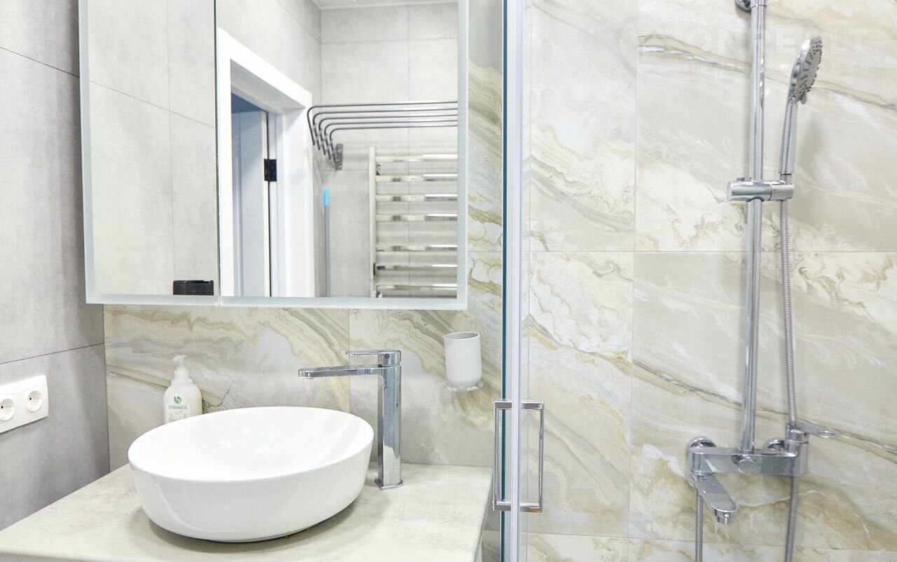 - Раковина, шкафчик с зеркалом.