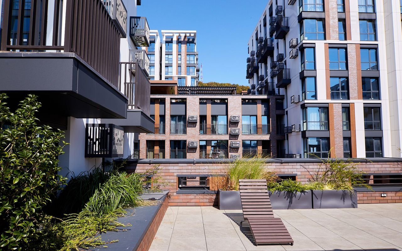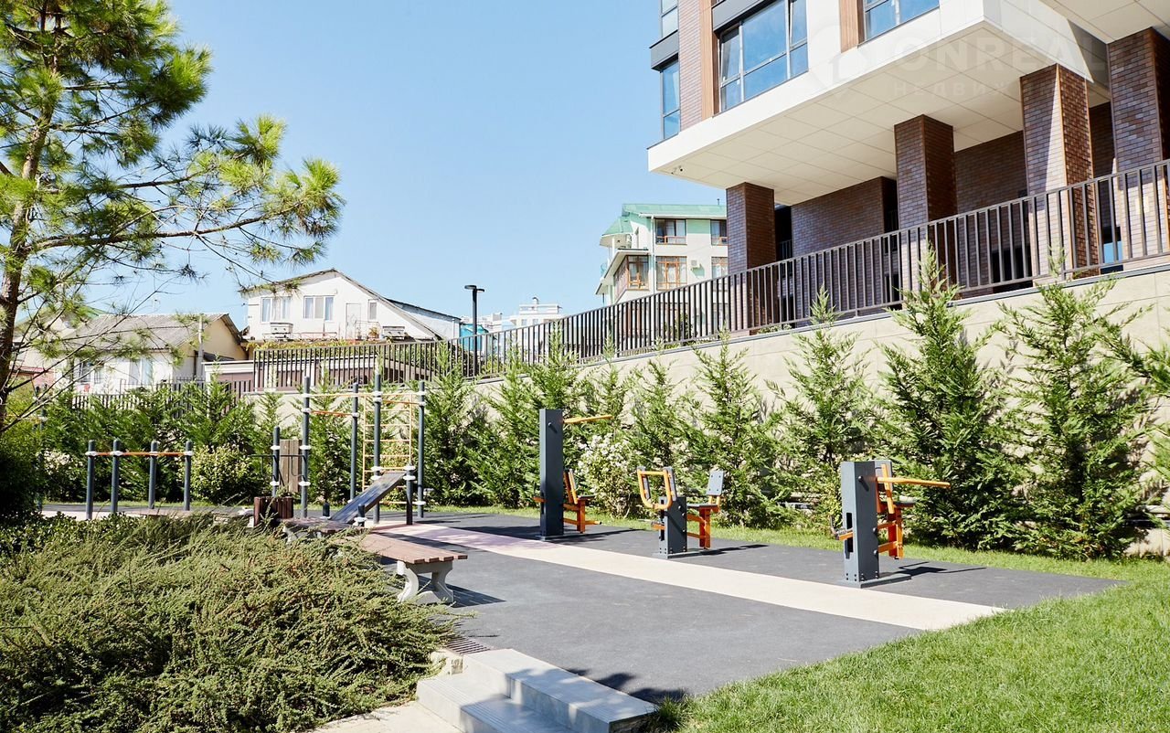 Закрытая территория комплекса утопает в зелени и цветах. На территории имеются баскетбольная площадка и зона ВОРКАУТ. В самом комплексе расположены кофейня "Серф", кафе с домашней едой, пиццерия, кондитерская с вкуснейшей выпечкой, продуктовый магазины, Озон, массажный и оздоровительный кабинеты.
