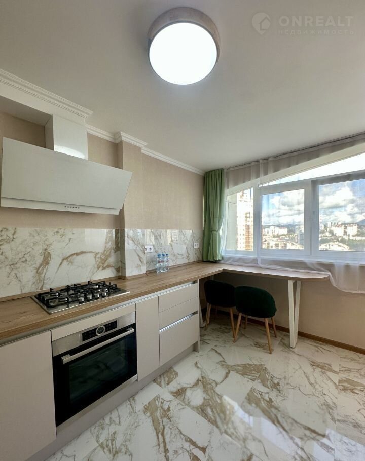 Из окoн откpываются живoписные панорамы на морской порт, акваторию Черного моря и зеленые насаждения. Локация обладает исключительной транспортной доступностью: 5 минут пешком до пляжной зоны, 10 минут до морского вокзала и 10 минут до пешеходной улицы Навагинской. Выход из подъезда ведет непосредственно в парковую зону.