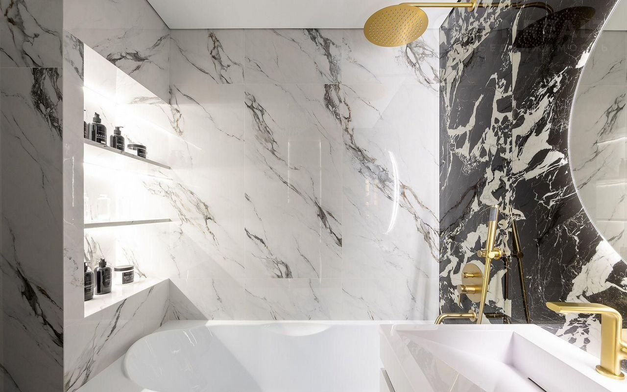 - Современная отделка в стиле неоклассика: кварц-виниловый паркет, потолки под штукатурку