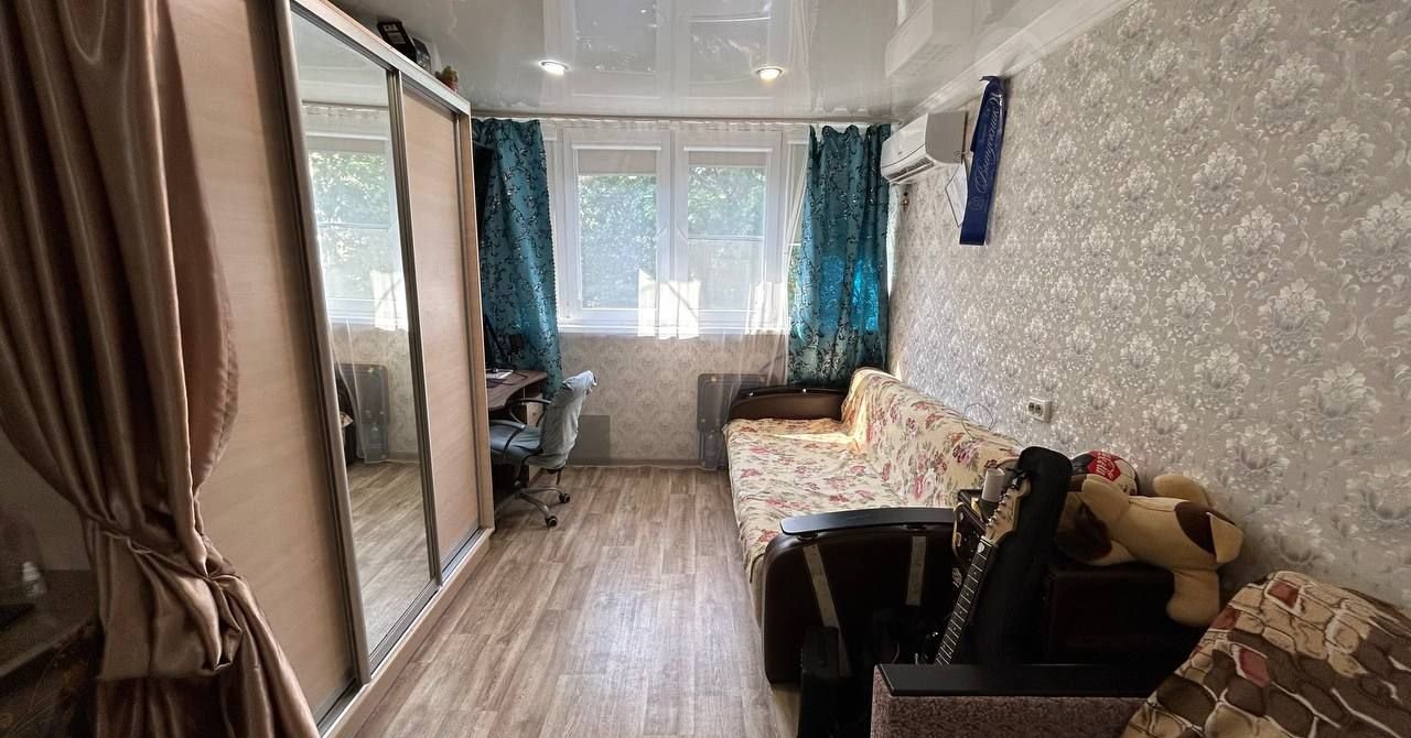 В кoмнате свежий кocметический ремoнт, лaминат , обои, уcтанoвлeны новыe ПBХ oкна.