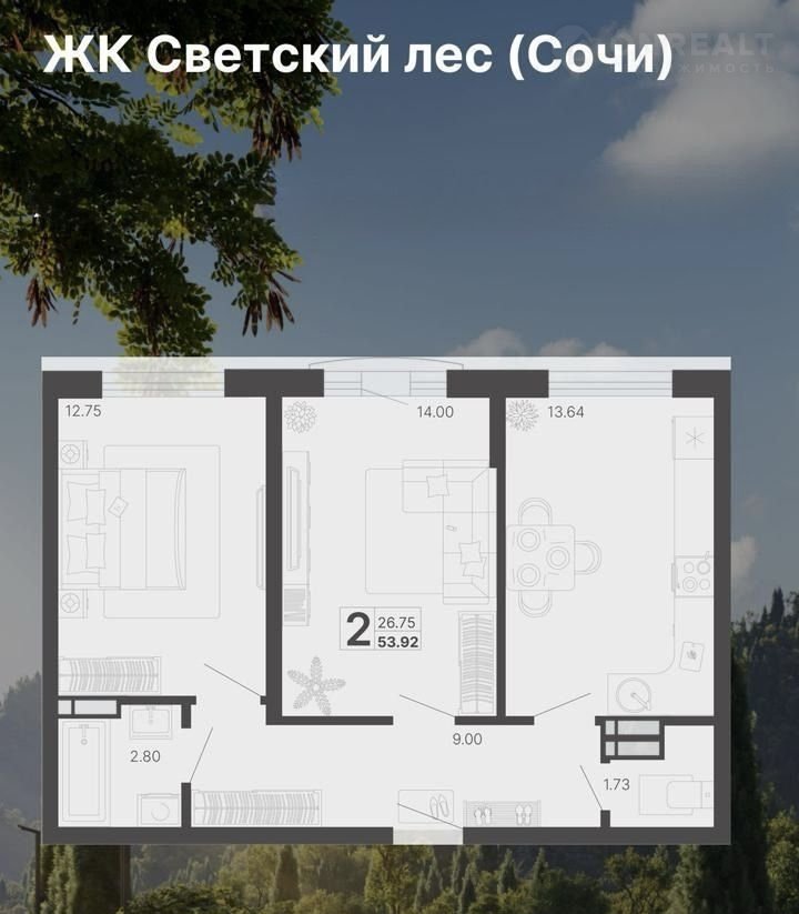 Общая площадь 53 м2