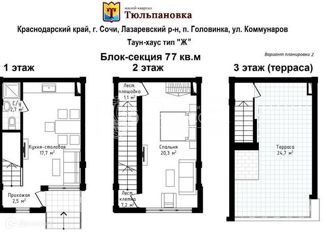Продаю таунхаус 88,6 кв.м в ЖК "Тюльпановка" в Лазаревском районе Сочи. До моря всего 100 метров (5 минут пешком). Площадь земельного участка 0,4 сот. Трехэтажный дом с большой террасой на эксплуатируемой кровле, без отделки. Отдельный вход, свое машиноместо. Коммуникации центральные: газ, водоснабжение, канализация и электроснабжение, отоплени... |