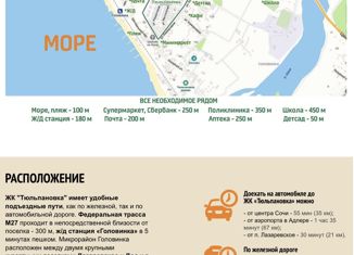 Таунхаус 88,6 м2 в Лазаревском районе, мкр. Головинка в 3 минуты пешком от моря! Один из лучших поселков такого уровня на всем побережье! Идеальное место для отдыха и жизни. Ровное место, чистейшее море и воздух. Удобное расположение поселка между до Сочи 35 км., всего 50 минут езды на электричке от ж/д станции Головинка. До станции 5 минут пешком... |