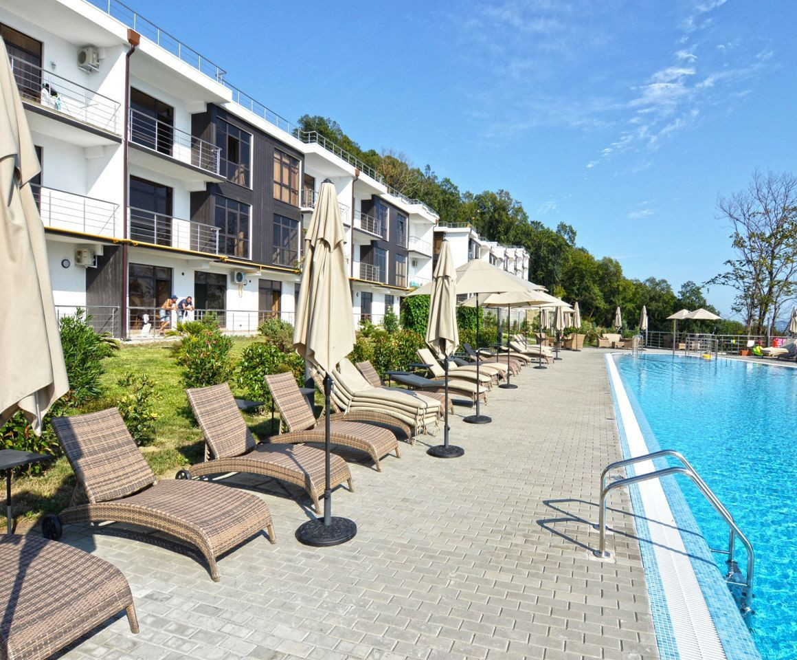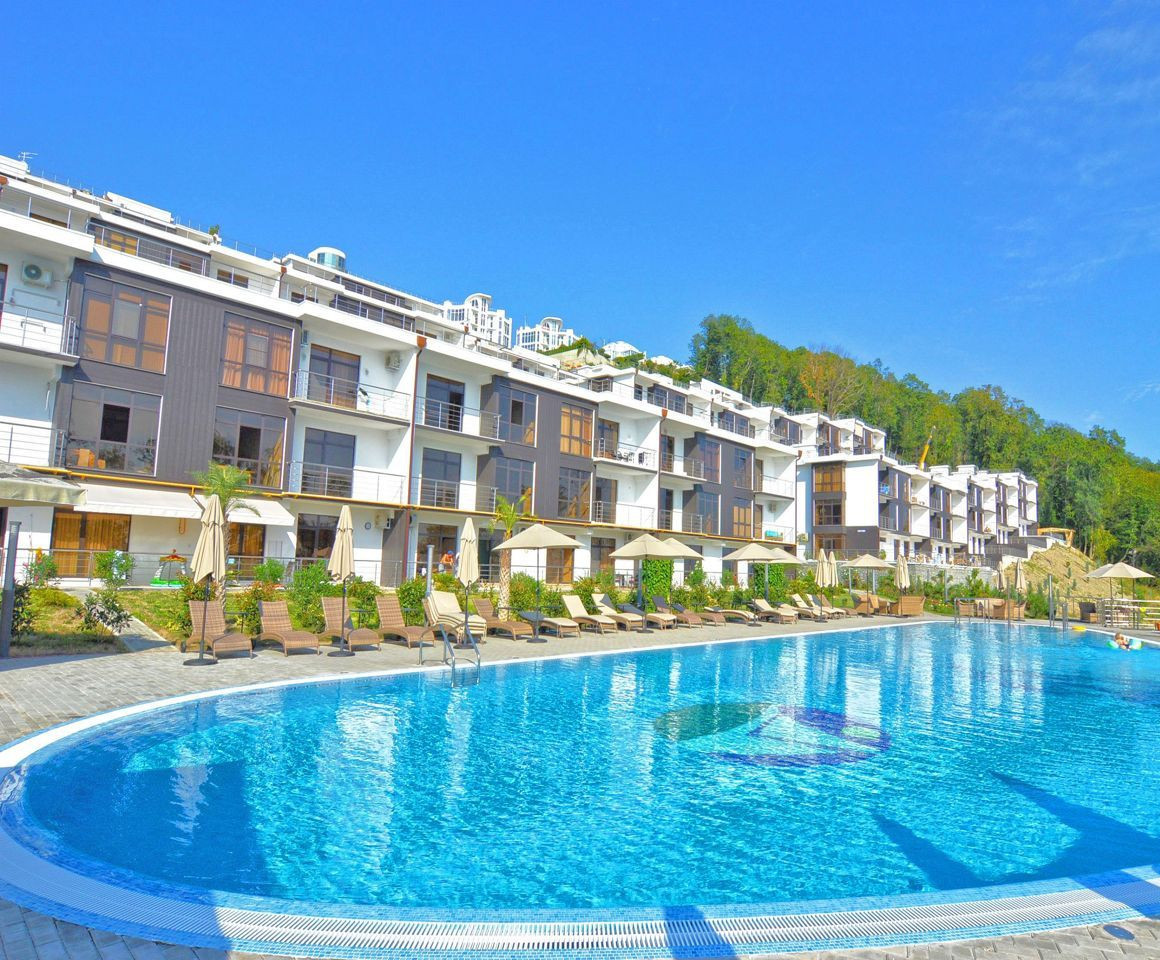 Комплекс расположен в респектабельном районе Черноморского побережья в десяти минутах езды до центра Сочи.