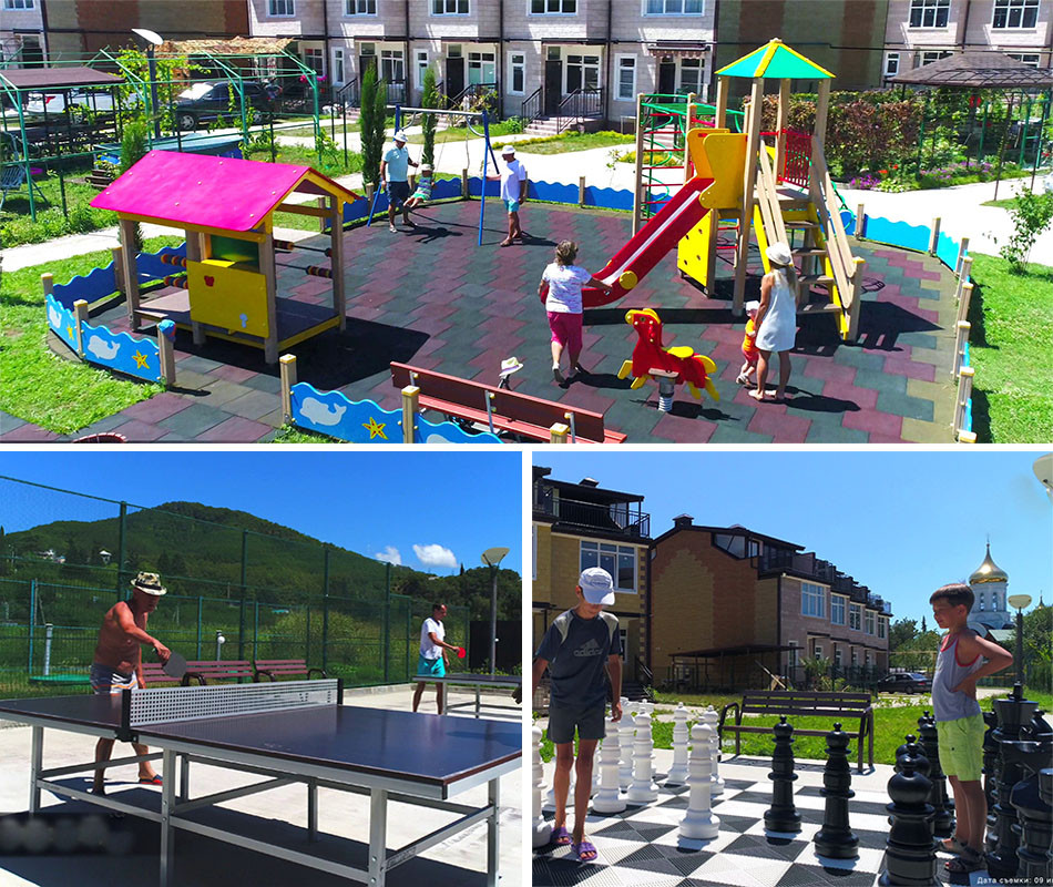 На территории комплекса предусмотрено детское дошкольное образовательное учреждение, многофункциональный комплекс, спортивные и детские площадки, паркинг и зона барбекю. На огороженной территории комплекса буден выполнен ландшафтный дизайн и произведено озеленение прилегающей территории.