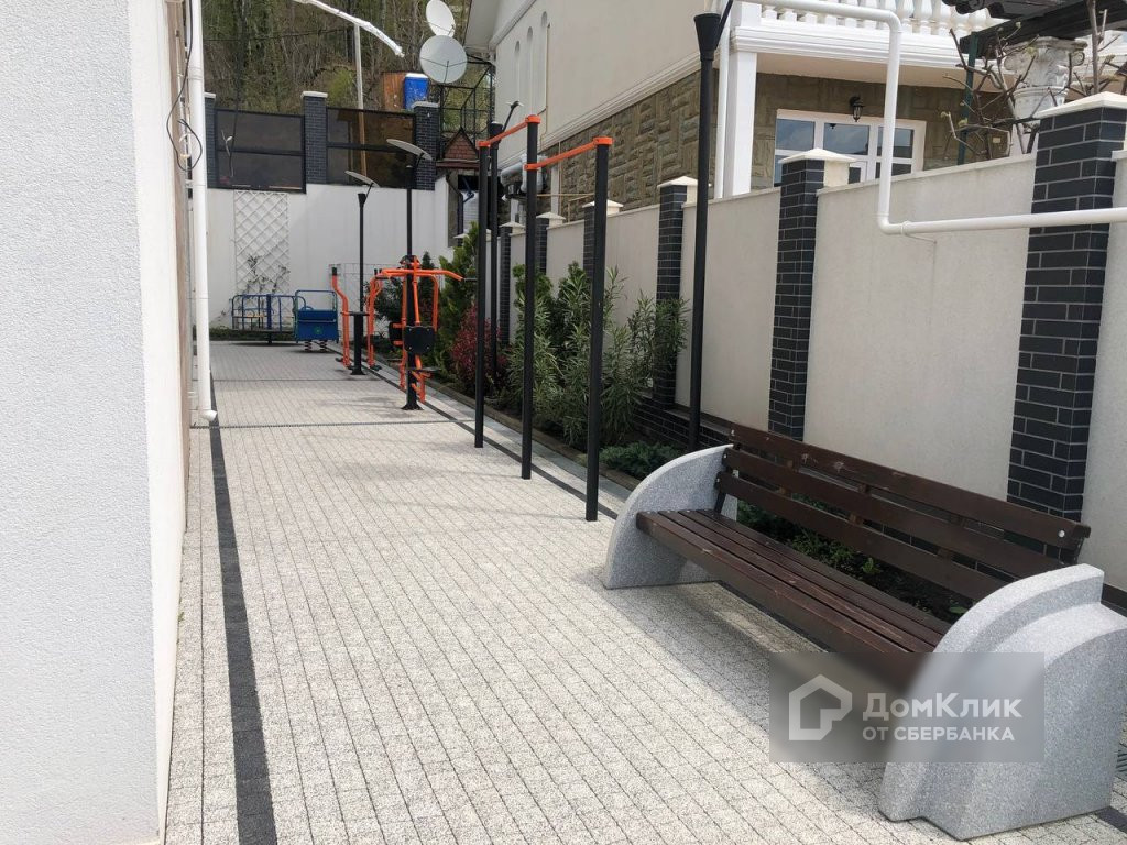 Во дворе располагается бассейн с подогревом, зона барбекю, а также детская и спортивная площадка. Витражные окна в пол панорамный вид на моря, прямо из двора.