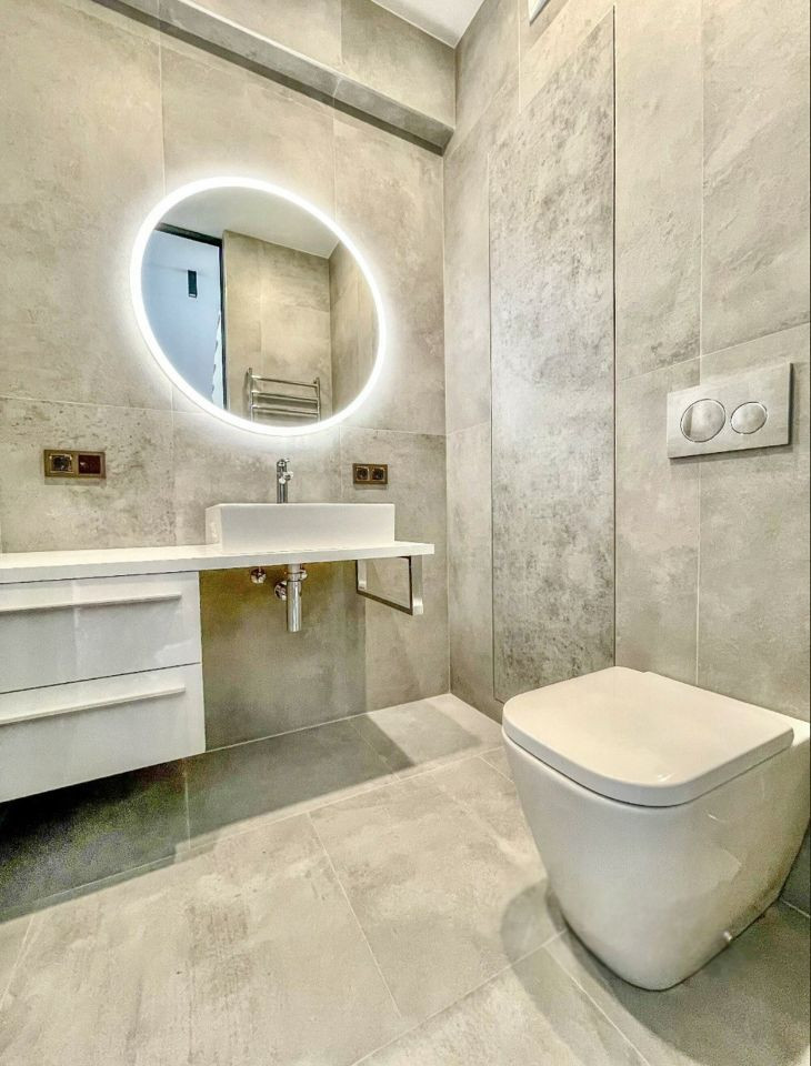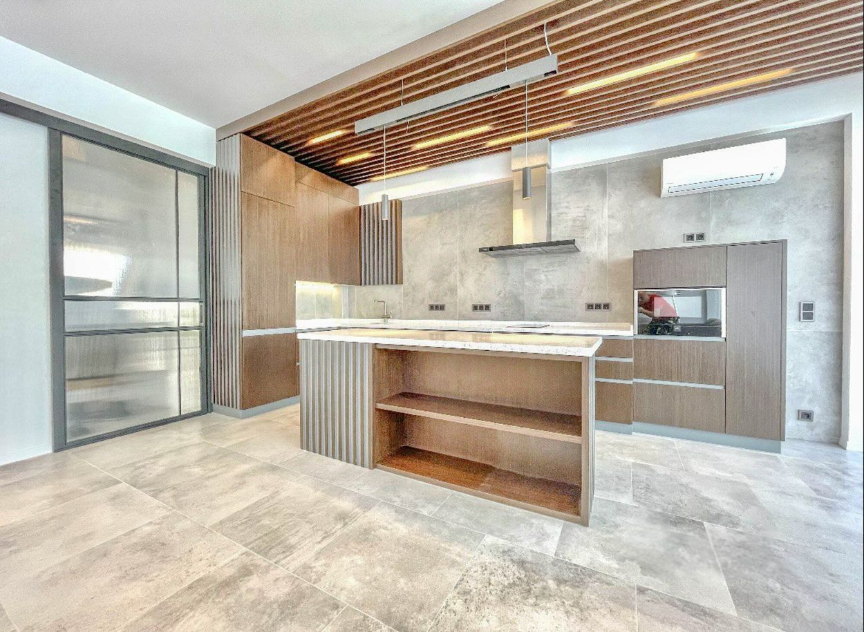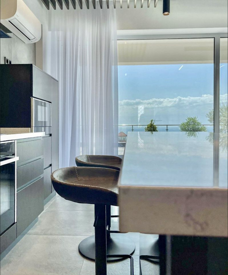 Таунхаусы имеют дорогую премиальную отделку. Установлена встроенная и мягкая мебель, а также вся бытовая техника ведущих немецких брендов (Neff, Liebherr).