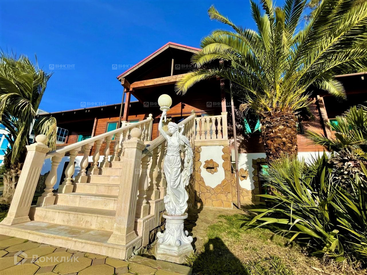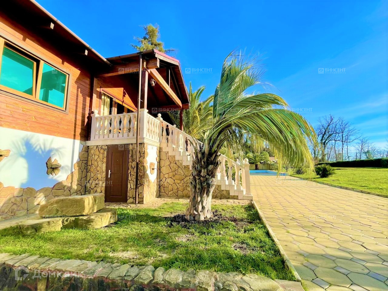 Вся территория комплекса украшена авторским ландшафтным дизайном - участок благоустроен субтропическими и хвойными деревьями, газонами с декорированием декоративного камня.