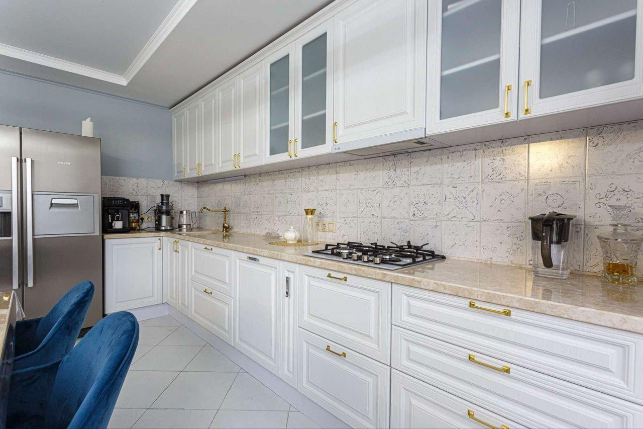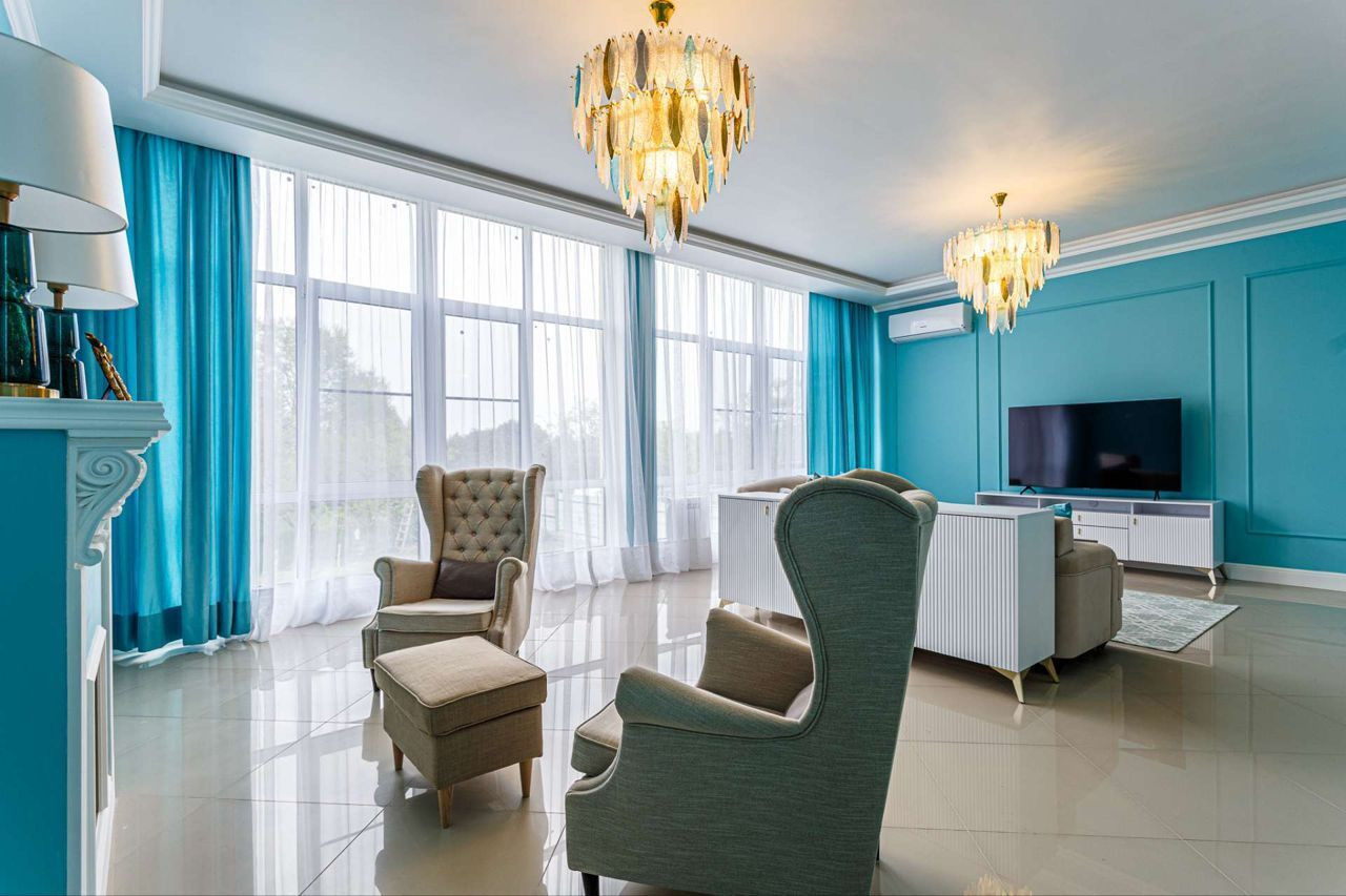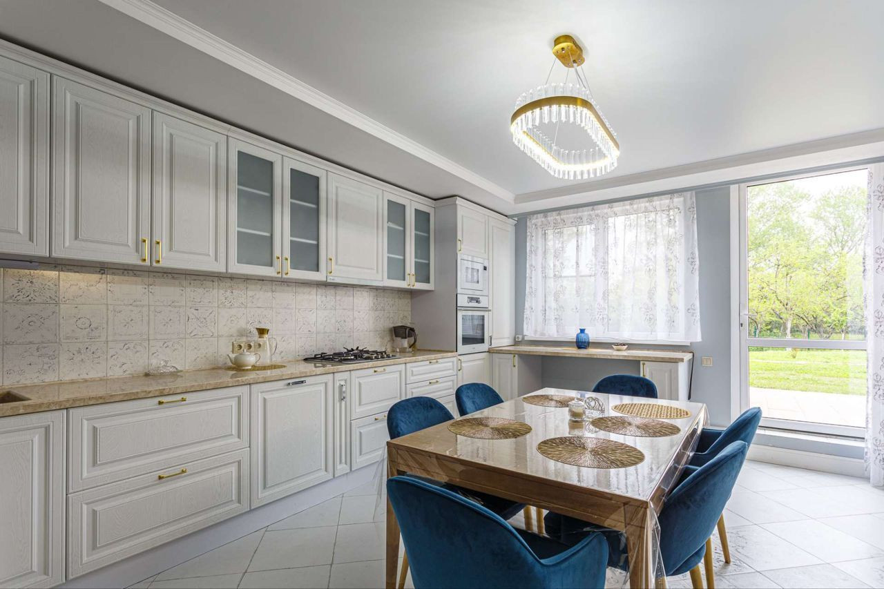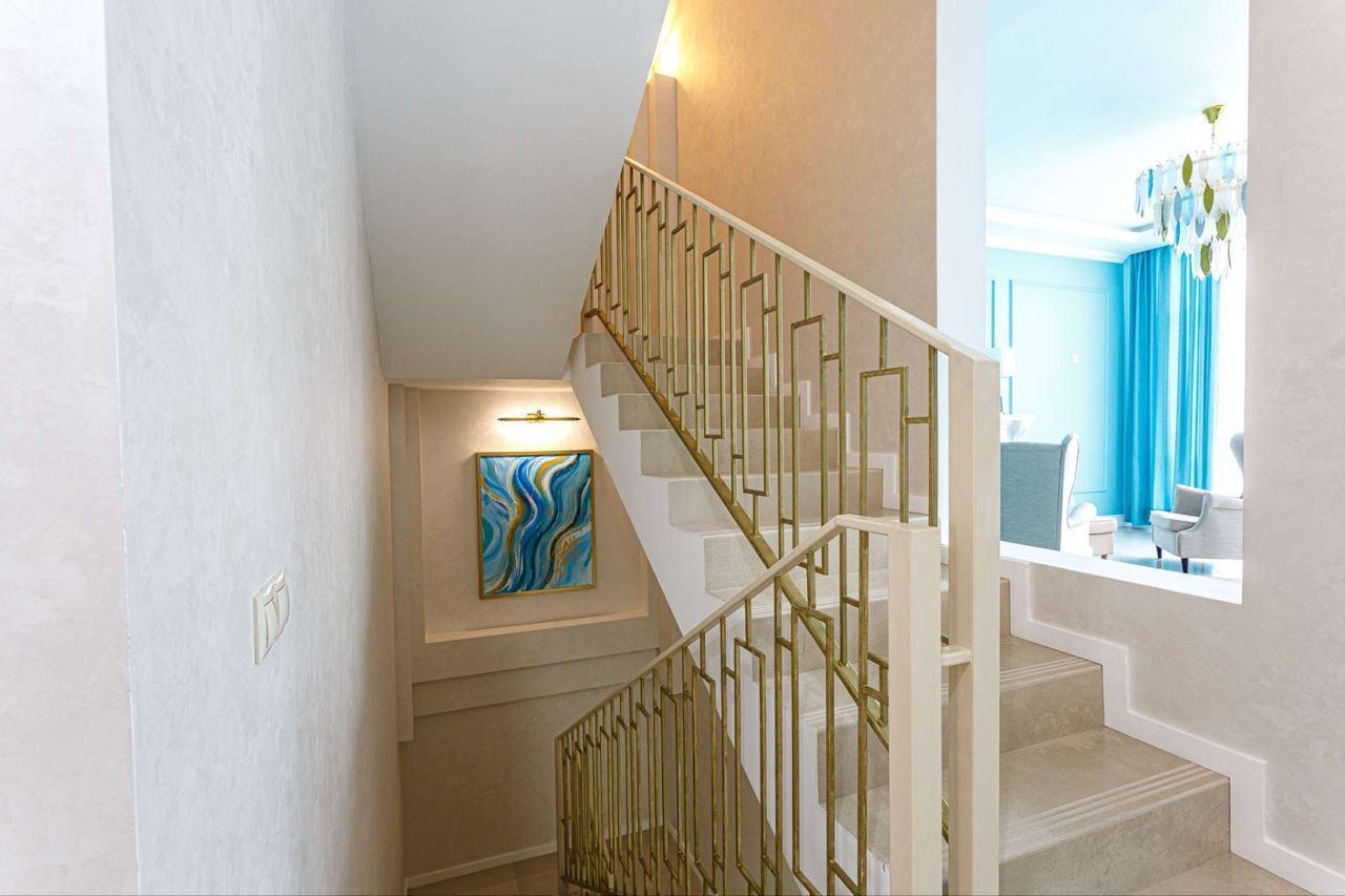 Дорогой ремонт, техника ( телевизоры, кофемашина, соковыжималка, газовая плита, духовой шкаф, большой двухкамерный холодильник мелкая бытовая техника).На первом этаже большая гостиная, спальня и санузел, на втором этаже две спальни, одна с гардеробом и шикарной ванной с видом на горы, на цокольном этаже сан узел, кухня гостиная и постирочная.